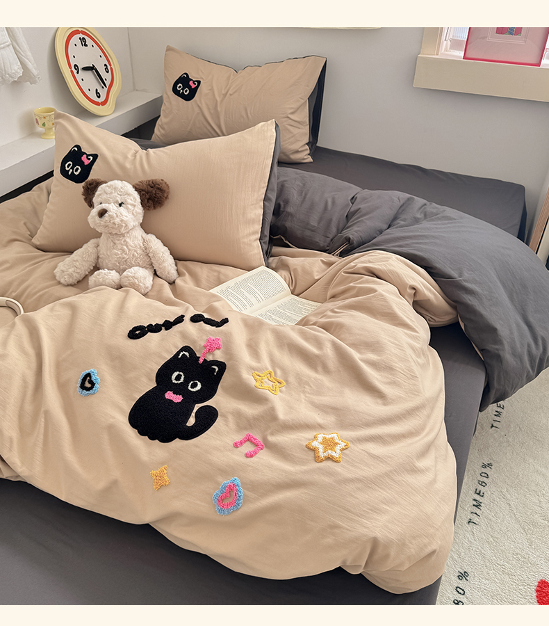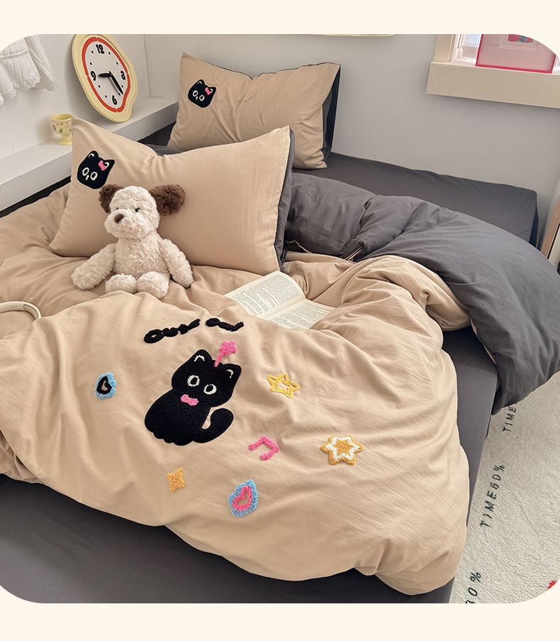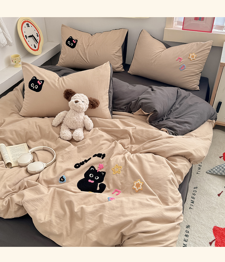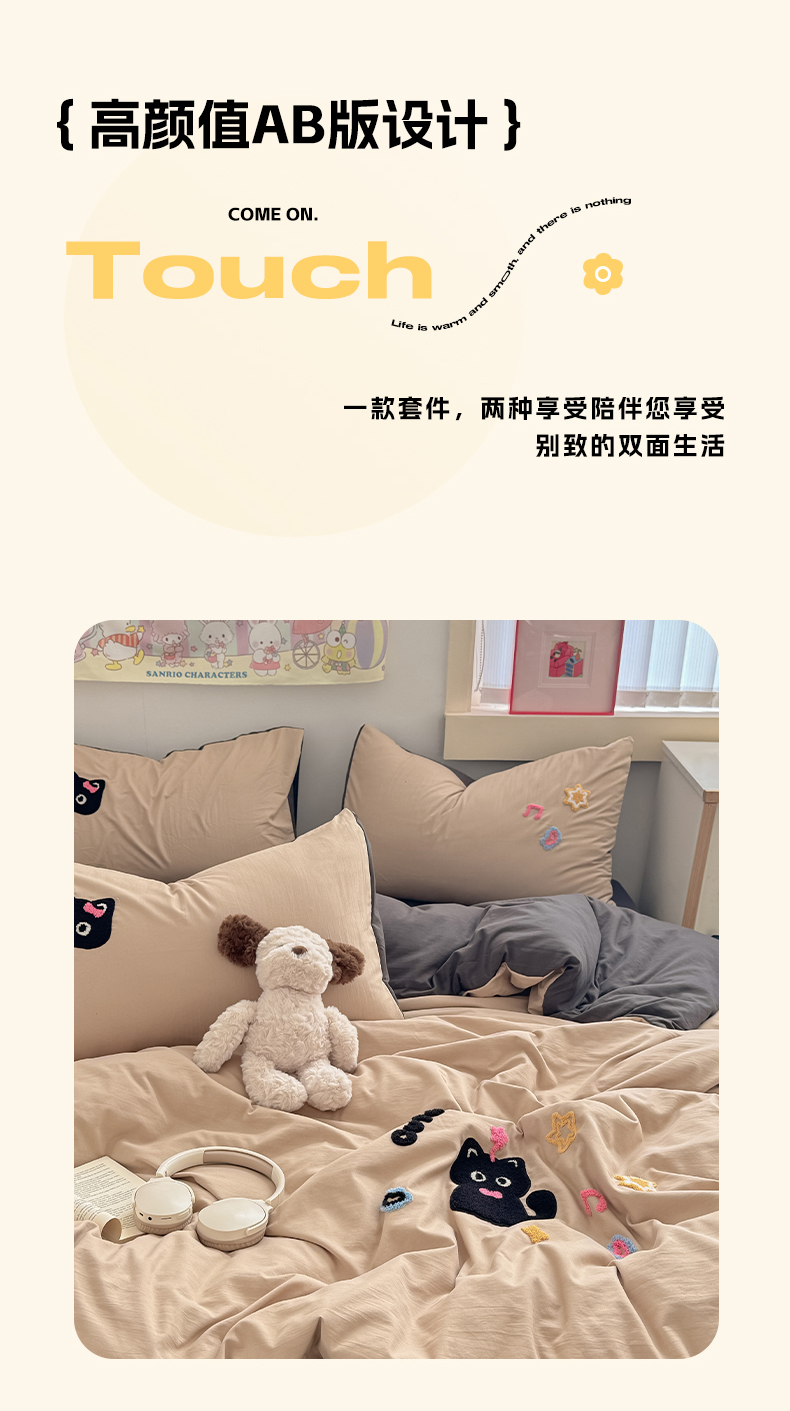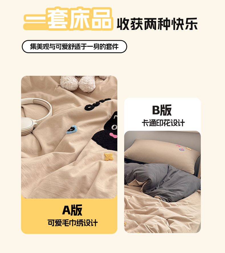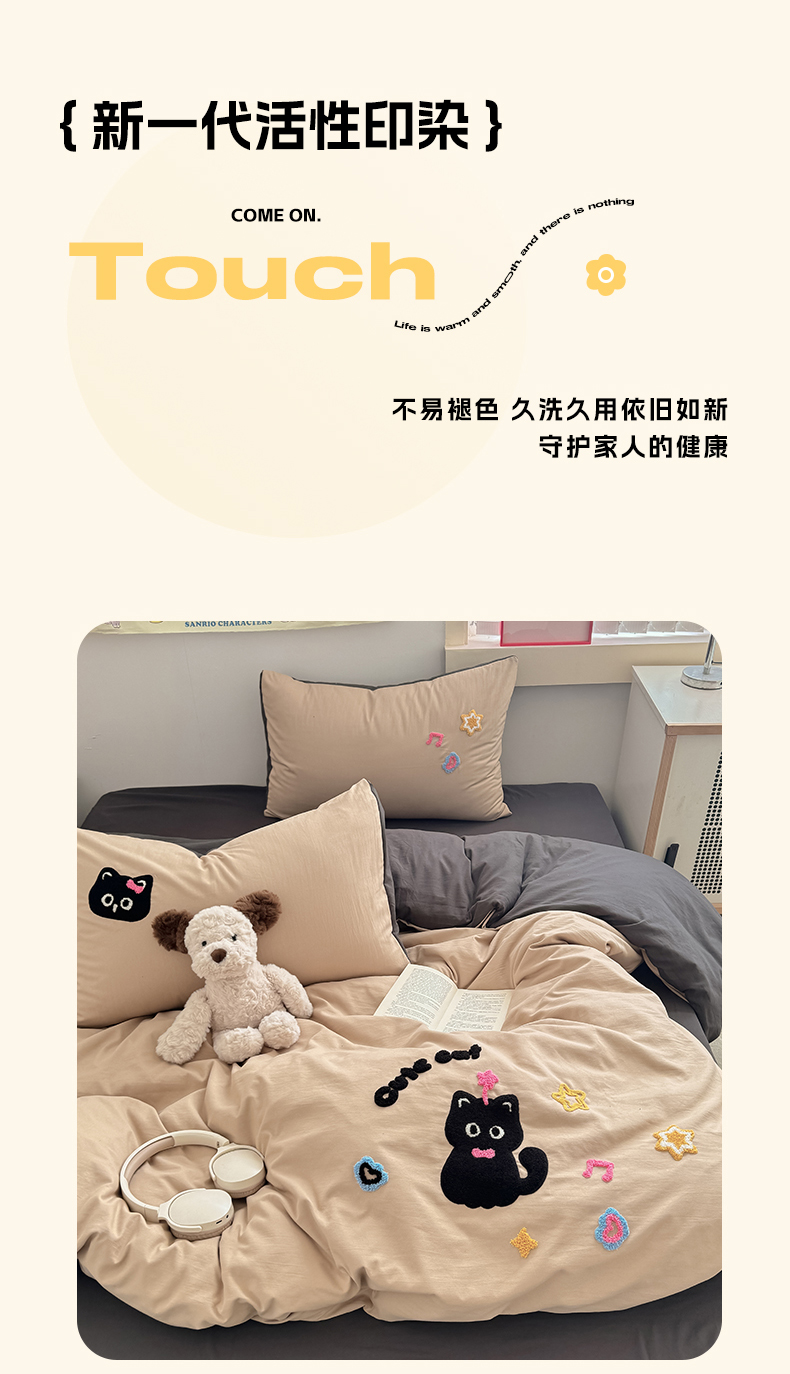 当前位置: 91家纺网 > 商品网购 > 床品套件 > 四件套 > 水洗棉四件套 > 沃朴家居 2025春夏新款亲肤水洗棉毛巾绣四件套 音乐猫咪