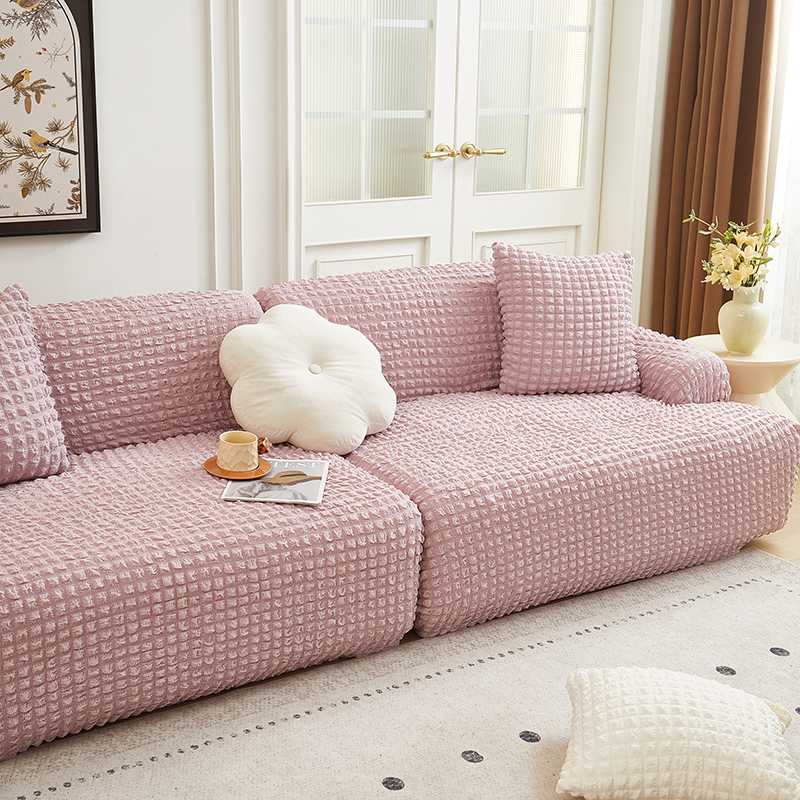 丝绮鹿 2025新款泡泡爆米花系列—直排松紧款沙发套 粉色