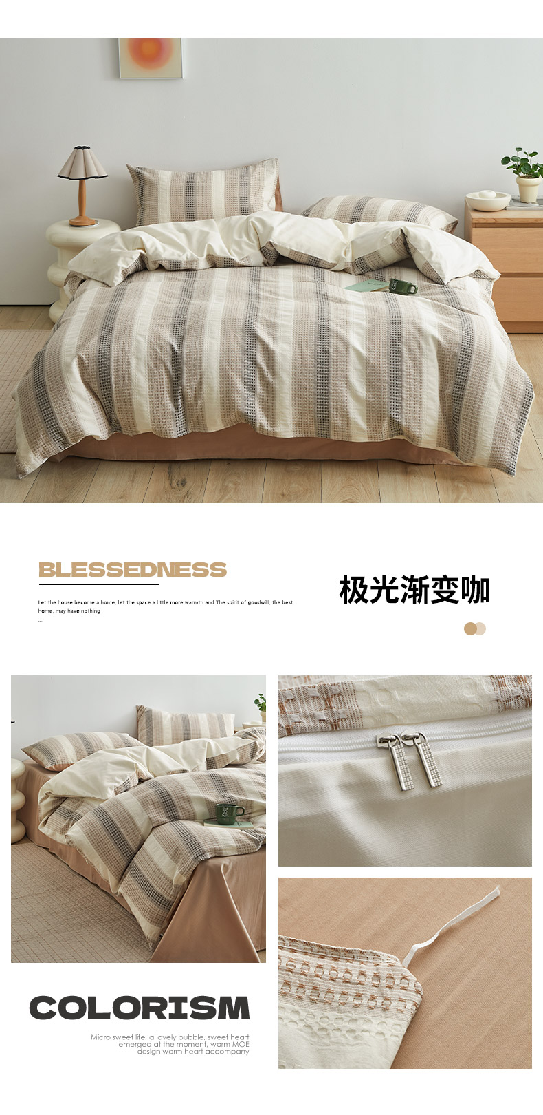 当前位置: 91家纺网 > 商品网购 > 床品套件 > 四件套 > 华夫格四件套 > 怡家居 2025新款全棉纯棉提花华夫格渐变色四件套 极光渐变咖