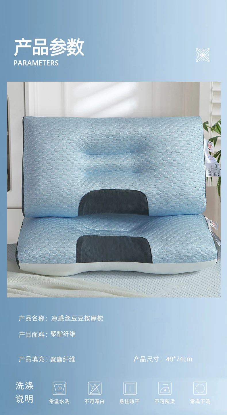 当前位置: 91家纺网 > 商品网购 > 枕头/枕芯/保健枕/颈椎枕 > 普通枕芯 > 雅晨枕芯 2025新款夏季冰豆豆枕芯枕头凉豆豆SPA按摩护颈分区定型枕芯 蓝色 48x74cm-中枕850g/只