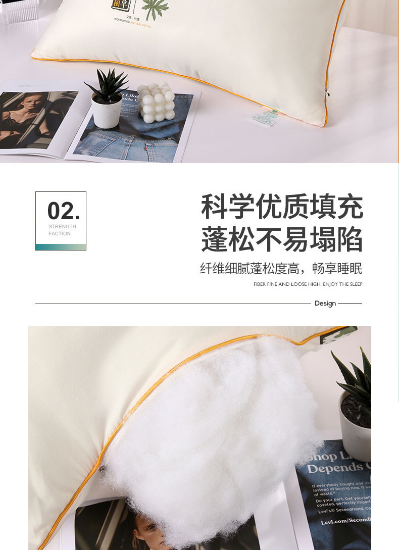 (总)雅晨枕芯 2025新款无荧光原色枕头枕芯立体款学生枕枕头枕芯,原色-立体枕