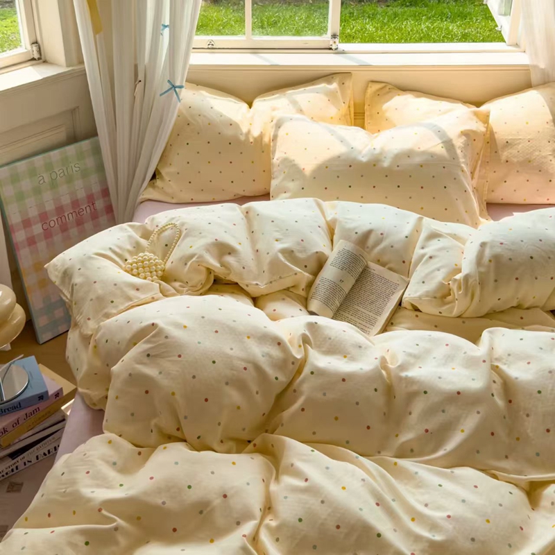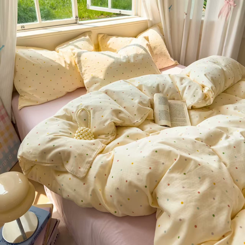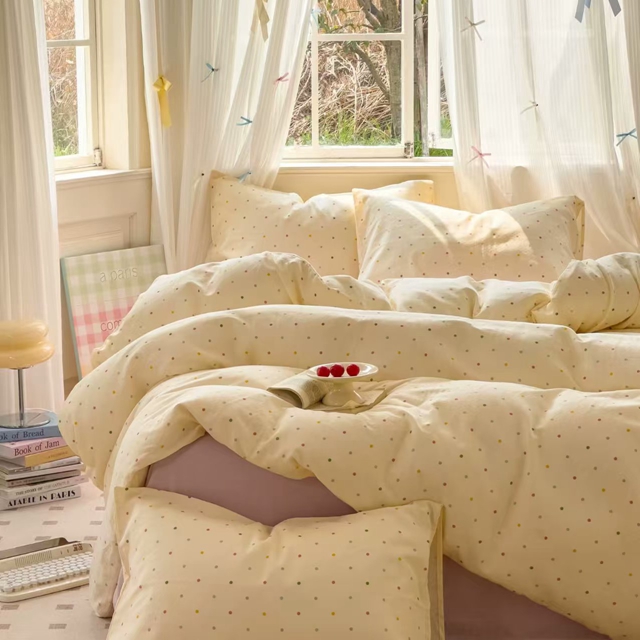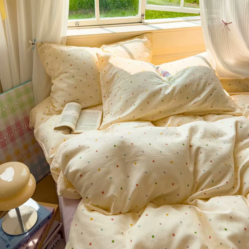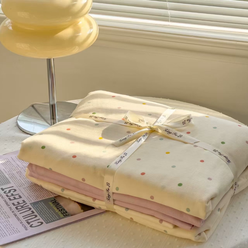栩裕纺织 2025新款全棉双层纱四件套 彩色波点