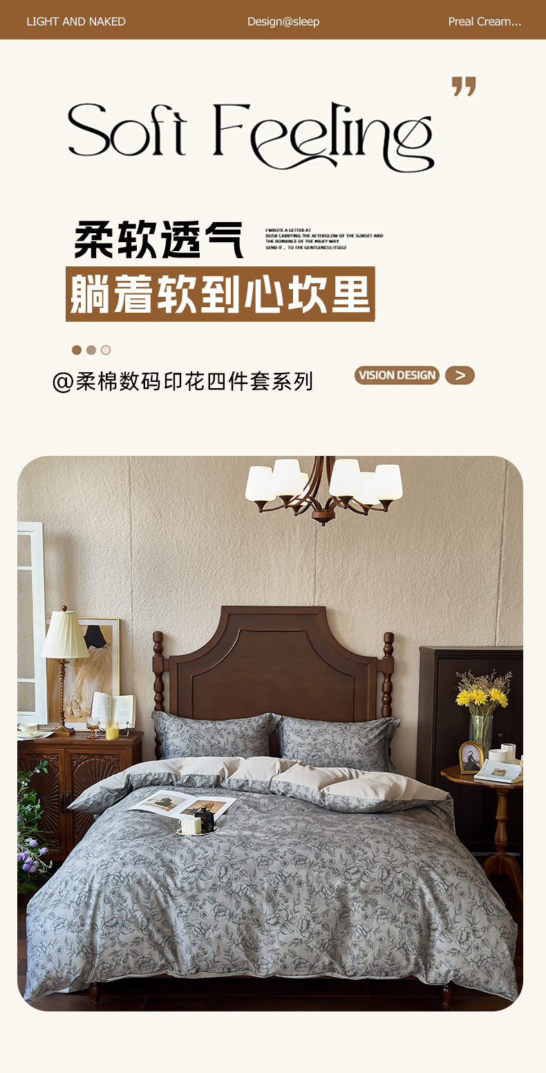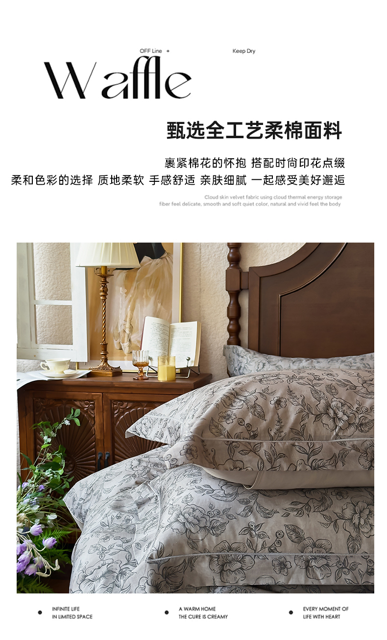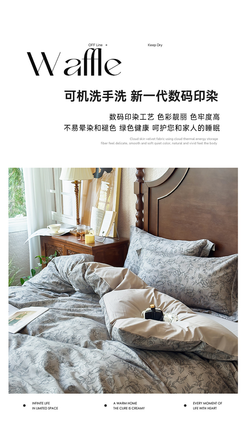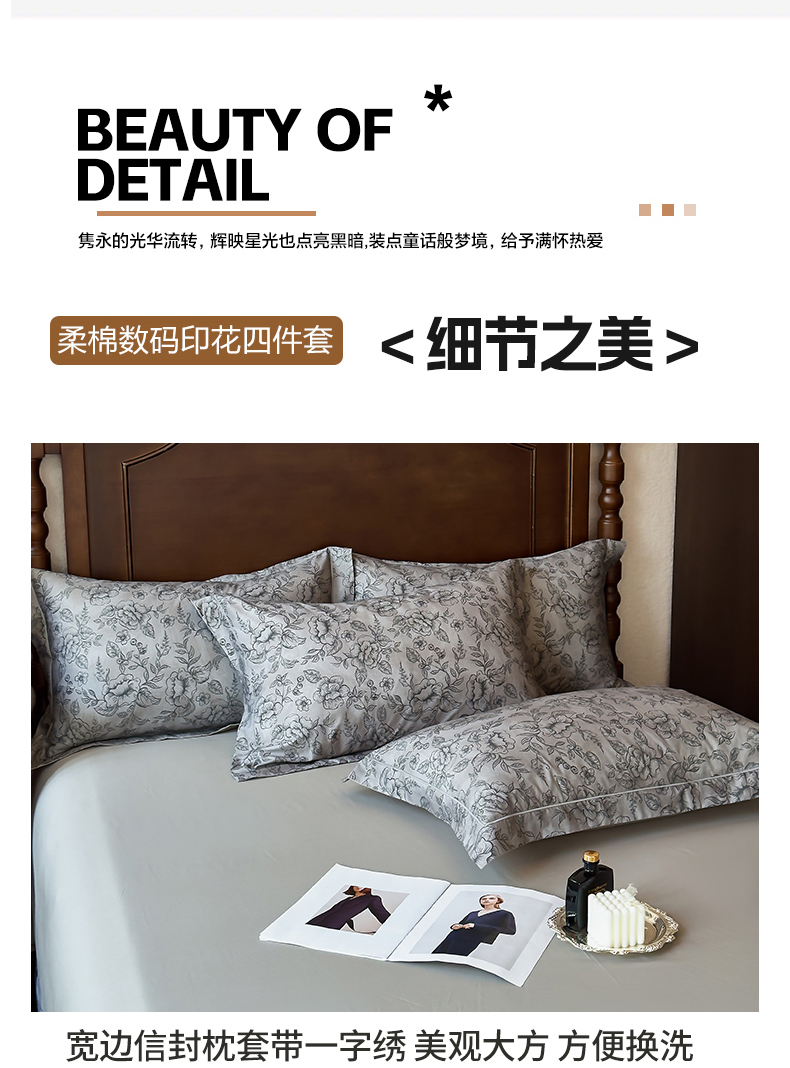 (总)由丽家纺 2025新款亲肤舒适全棉纯棉臻棉数码印花四件套系列,繁花似锦,感棉-粉,金溪-灰,金溪-咖,茂林-兰,明羽-黄,沐恩-绿,野玫瑰-紫,感棉-绿,玫瑰颂-粉