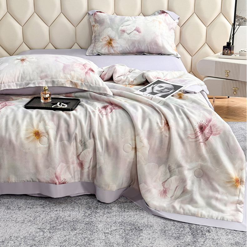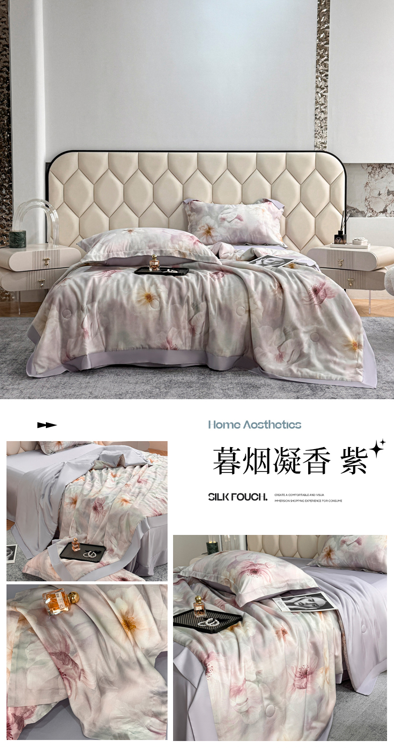 遇安家纺 2025新款50S莱赛尔天丝数码印花夏被四件套 暮烟凝香紫