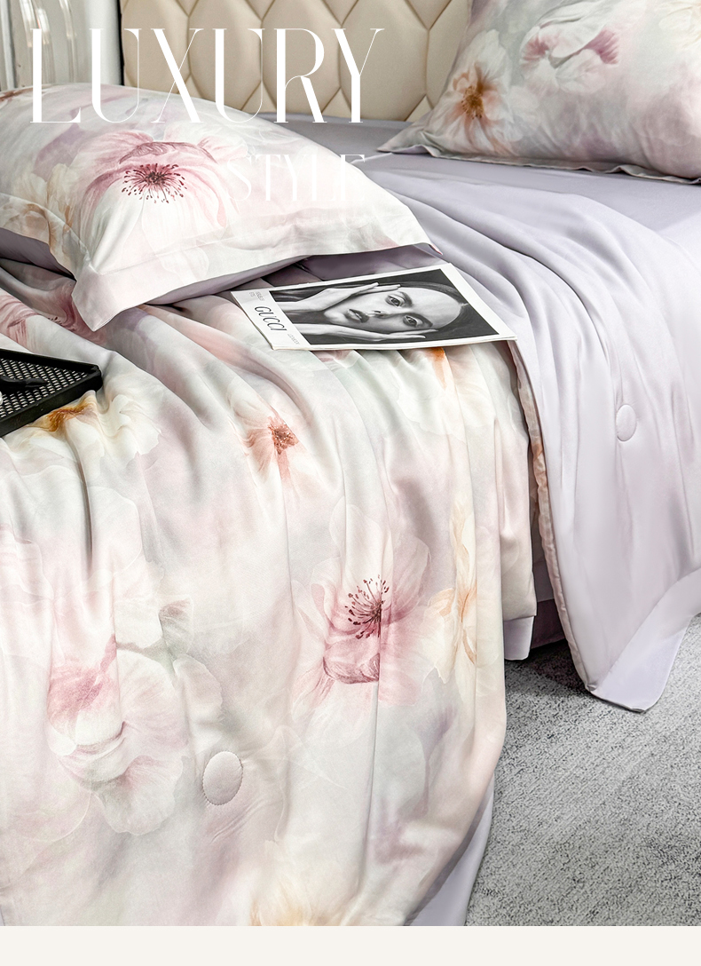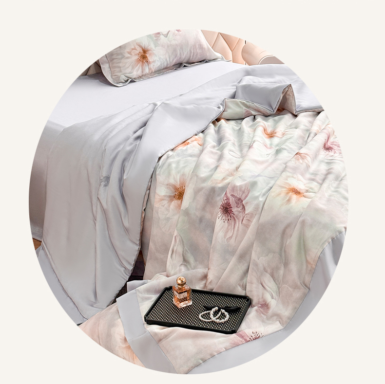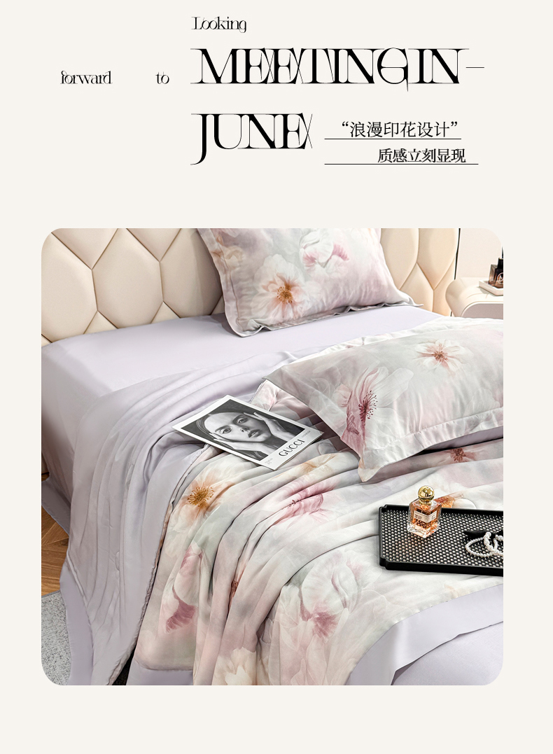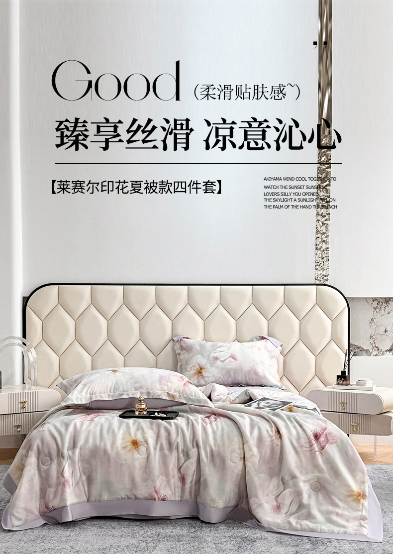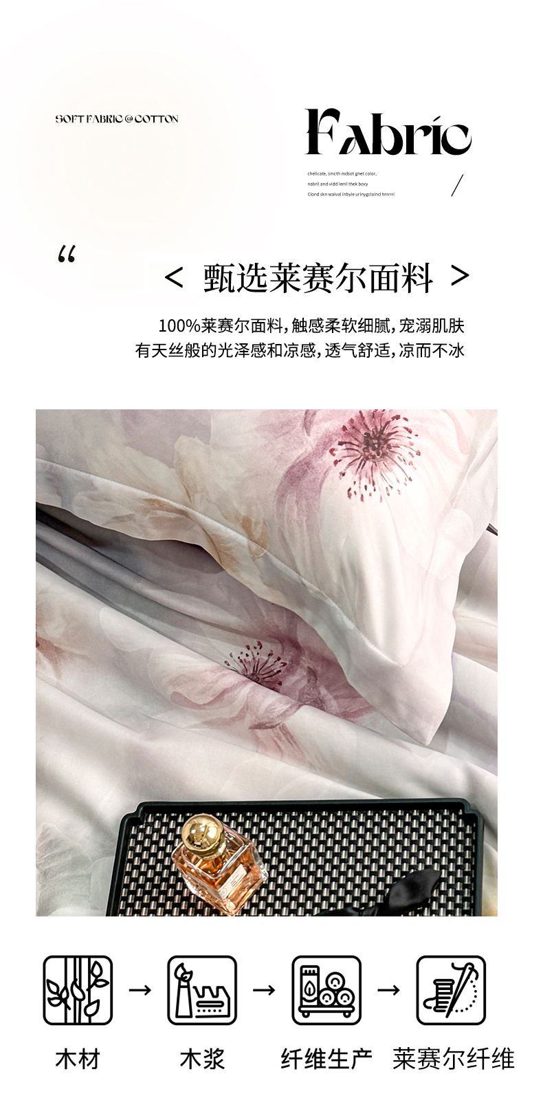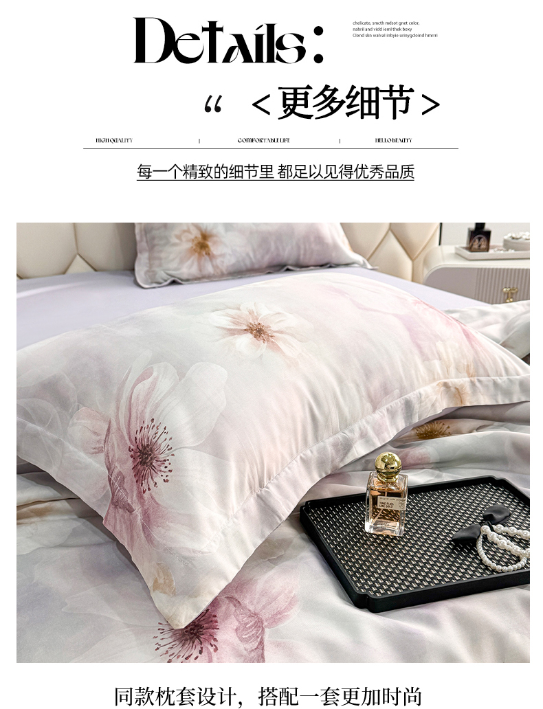 遇安家纺 2025春夏新款天丝数码印花四件套 灵动娇艳,灵动娇艳