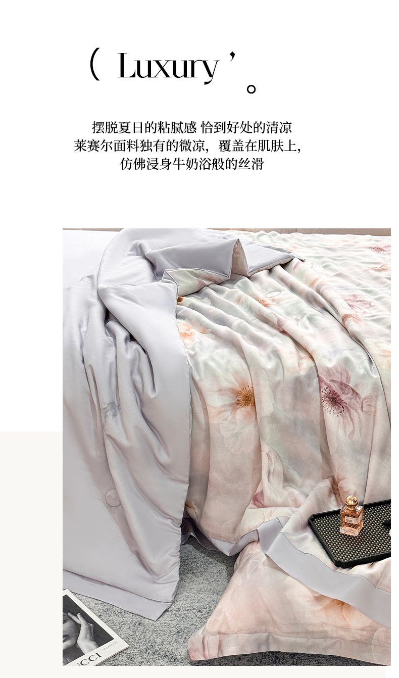 (总)遇安家纺 2025新款50S莱赛尔天丝数码印花夏被四件套,风漪黄,暮烟凝香蓝,暮烟凝香绿,暮烟凝香紫,昭花韵粉,昭花韵黄,昭花韵蓝,昭花韵绿