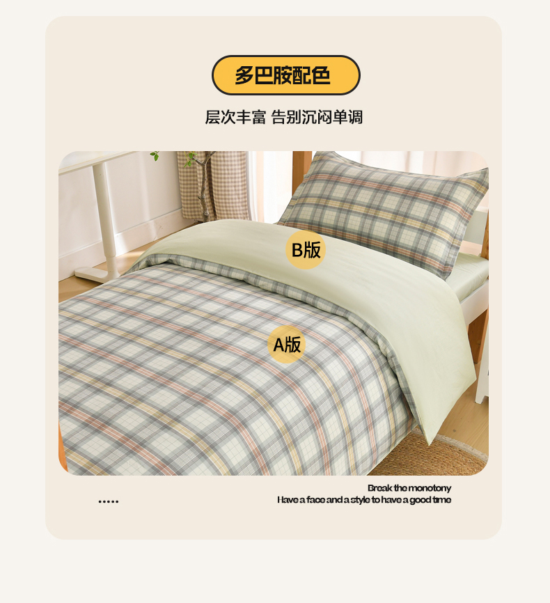 当前位置: 91家纺网 > 商品网购 > 床品套件 > 四件套 > 全棉普通四件套 > 乐旗家纺 2024新款13372全棉学生宿舍床单款三件套纯棉六件套 彩色空间