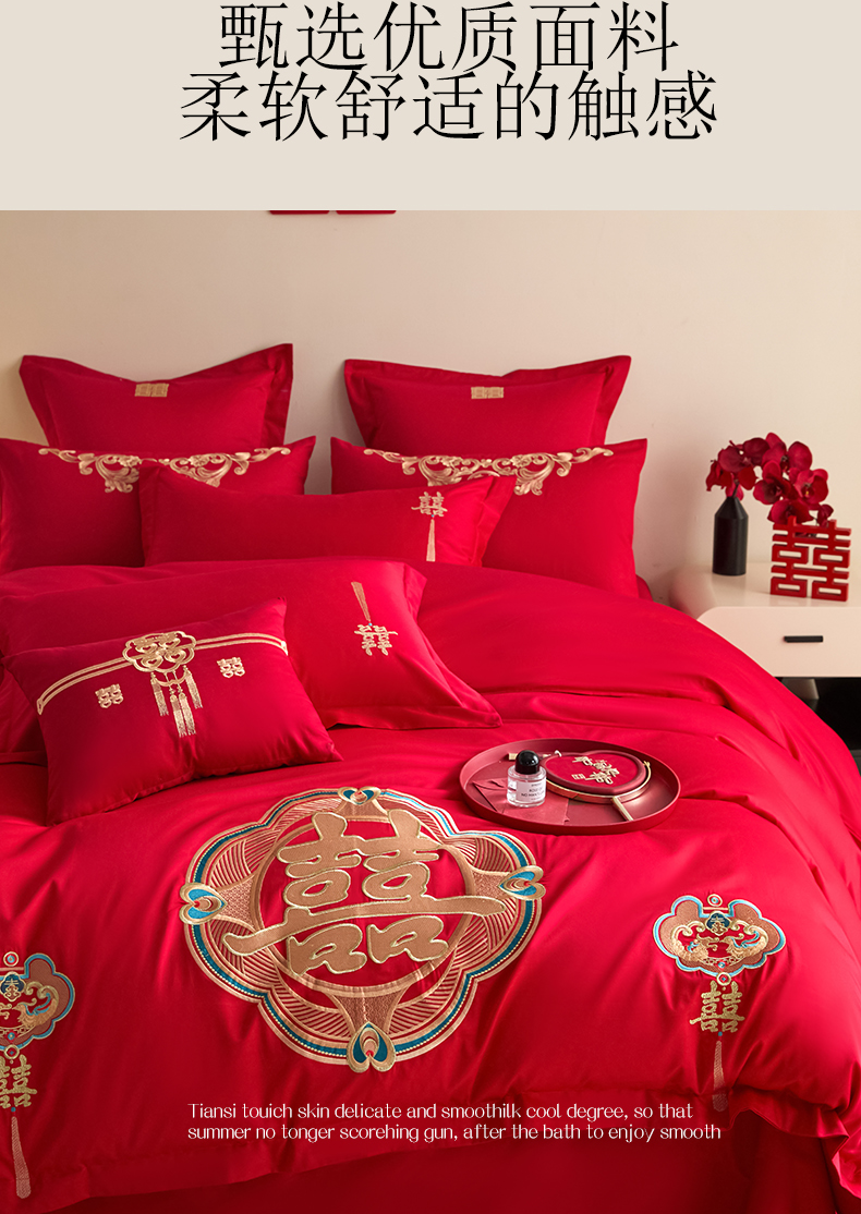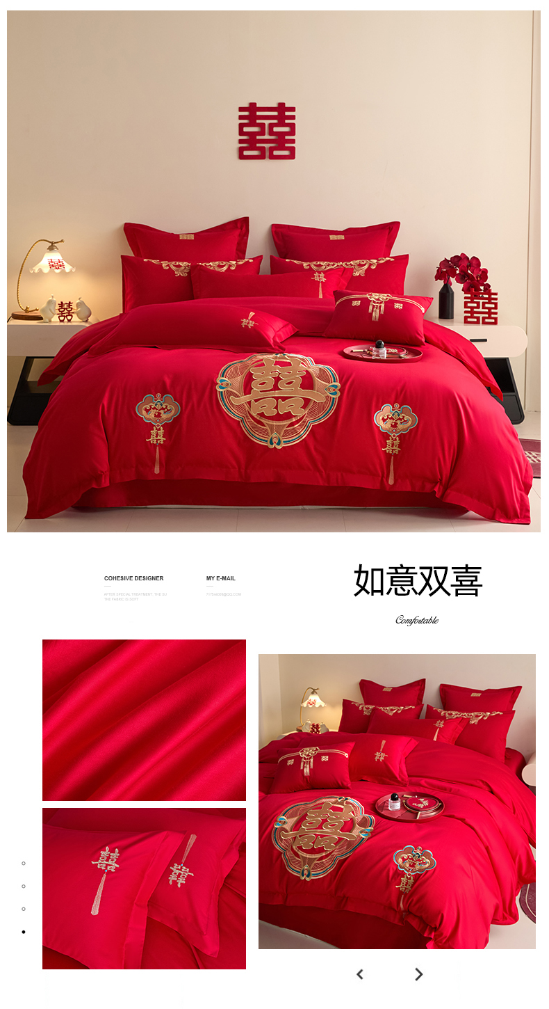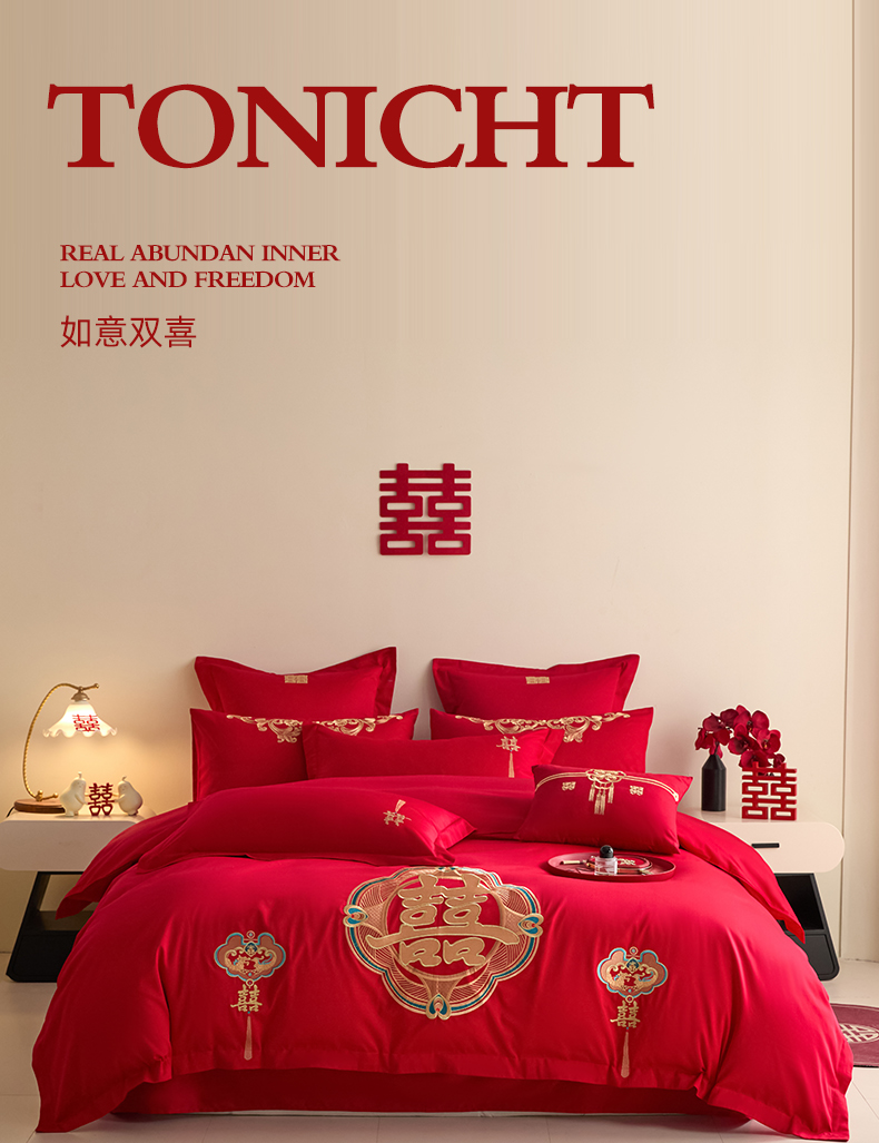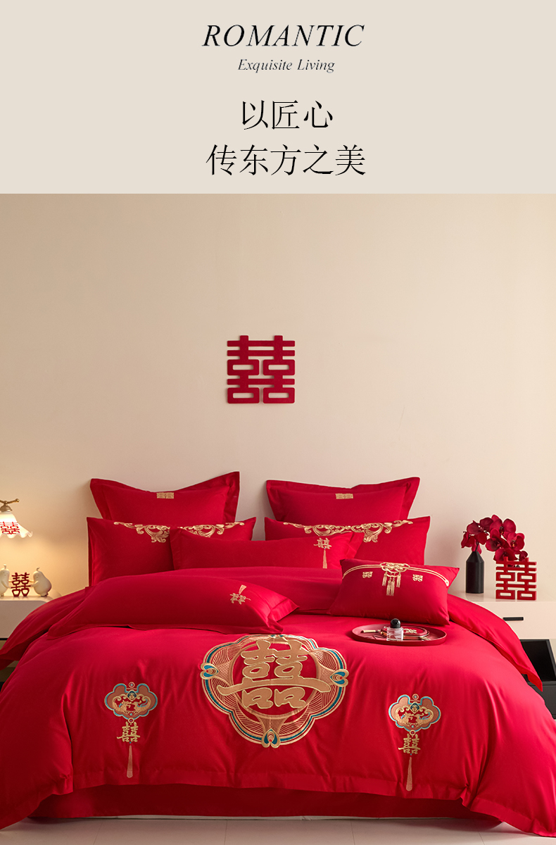 当前位置: 91家纺网 > 商品网购 > 床品套件 > 四件套 > 婚庆四件套 > 东方合美(原:皇家传奇)2025新款婚庆小红书化纤系列四件套(控价138/148) 如意双喜