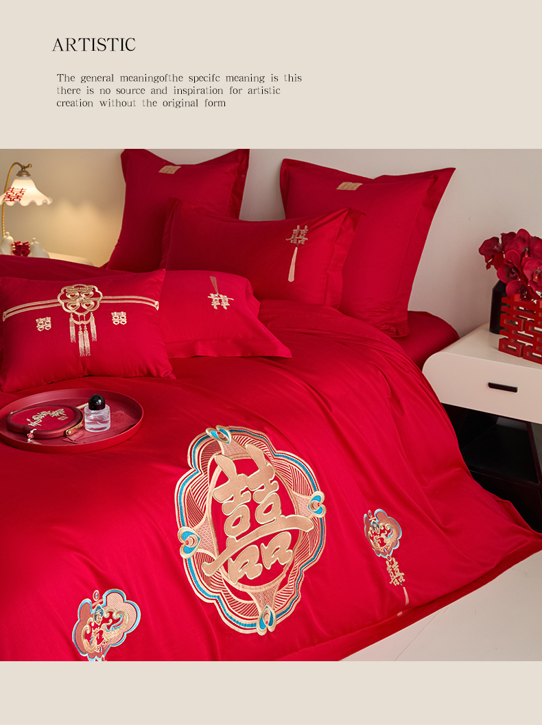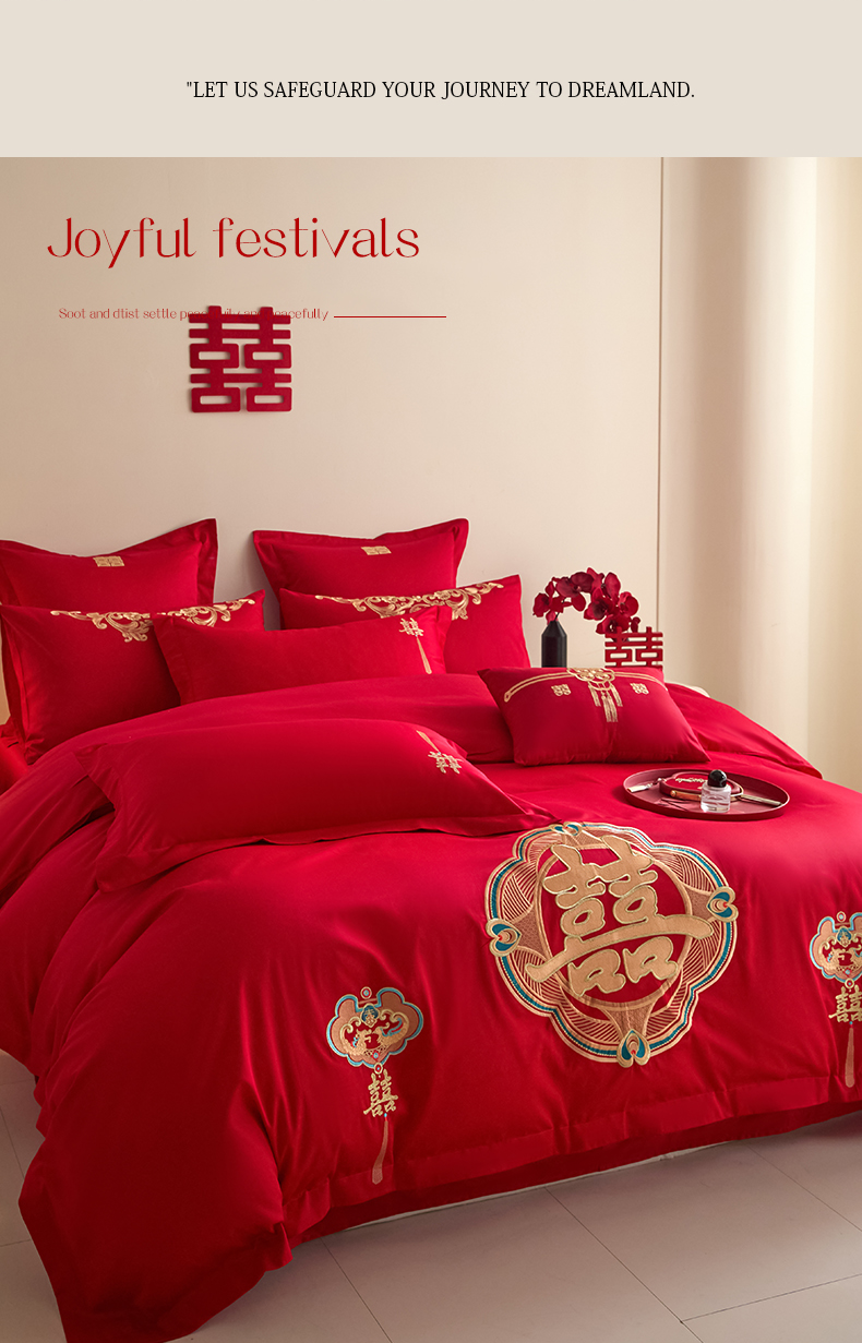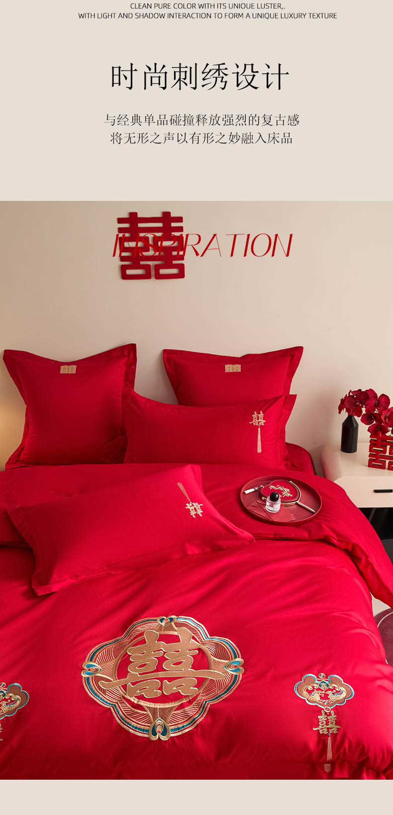 当前位置: 91家纺网 > 商品网购 > 床品套件 > 四件套 > 婚庆四件套 > 东方合美(原:皇家传奇)2025新款婚庆小红书化纤系列四件套(控价138/148) 如意双喜
