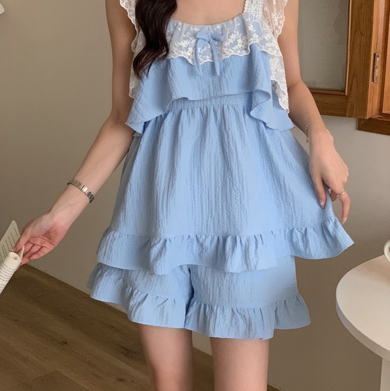 当前位置: 91家纺网 > 商品网购 > 居家日用 > 睡衣/家居服套装 > 妍景2025新款韩系吊带裙短裤套装 蓝色