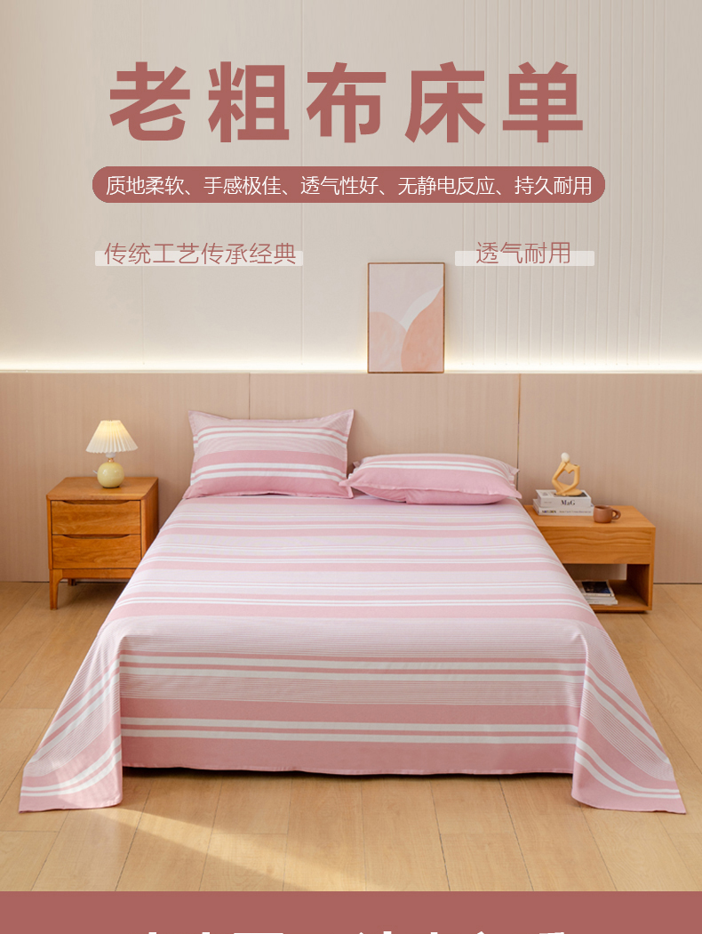 • 91家纺网 家纺一手货源 找家纺 居美良品2025新款100%全棉色织老粗布床单 云锦-浅粉