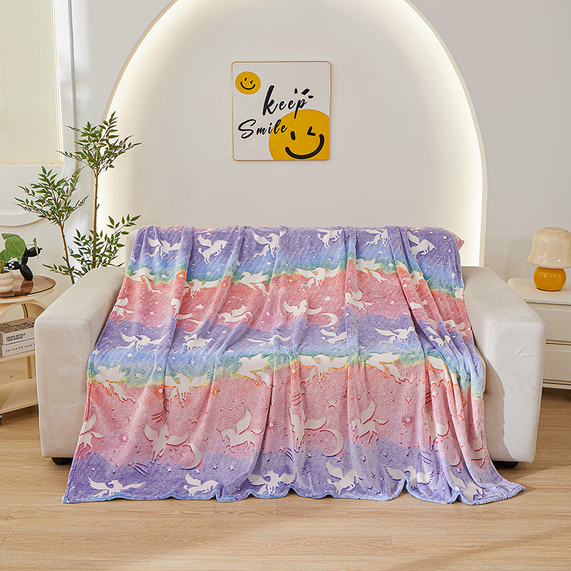 梦斋家纺 2025新款夜光彩虹独角兽飞马星星法兰绒毛毯 夜光5