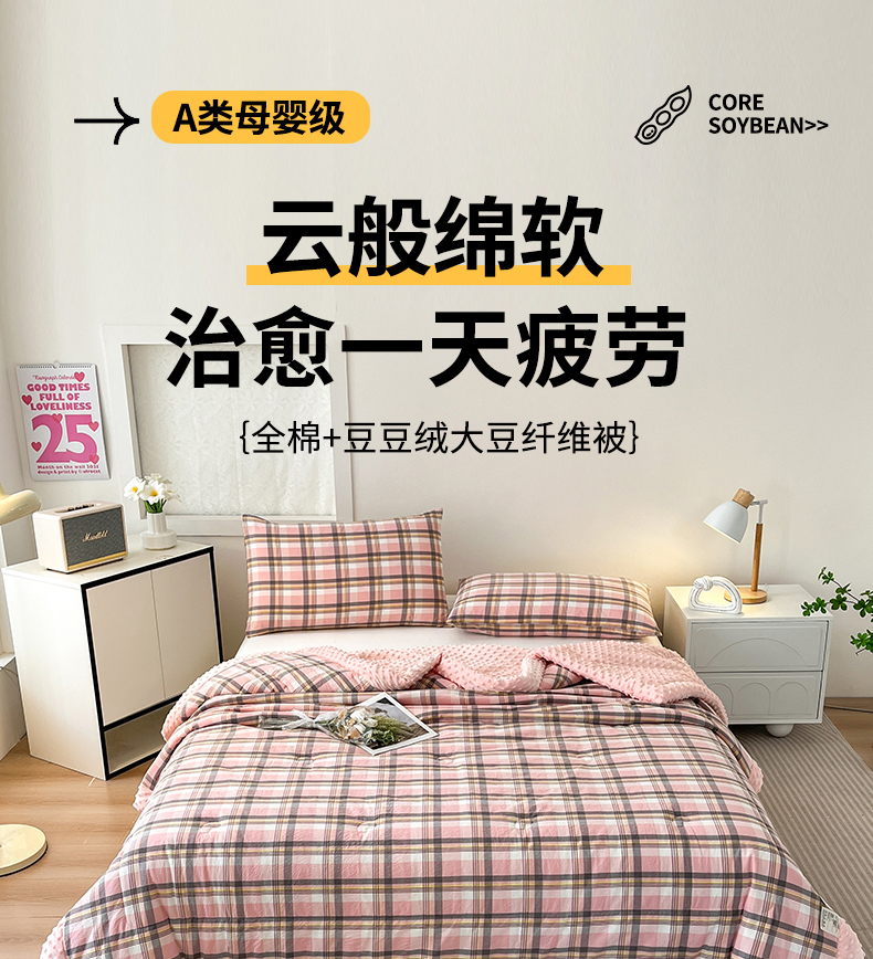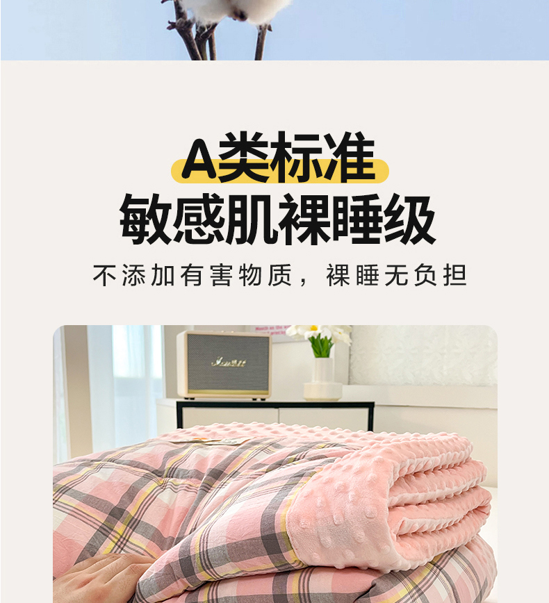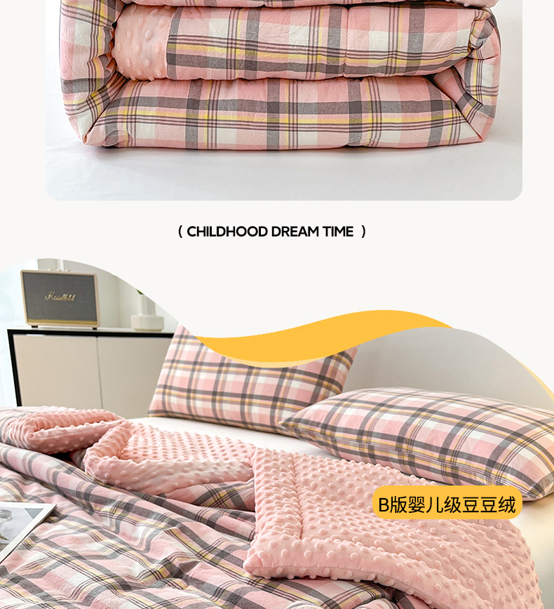 • 91家纺网 家纺一手货源 找家纺 鸣升家纺 2025新款全棉豆豆被被子被芯 莫妮卡粉