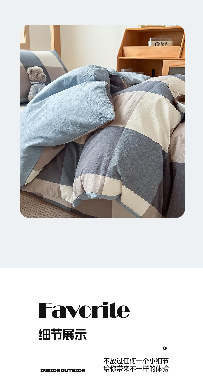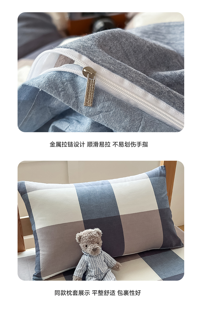 商品名称:鸣升家纺 2025新款全棉纯棉色织水洗棉学生三件套 米粽丈青格