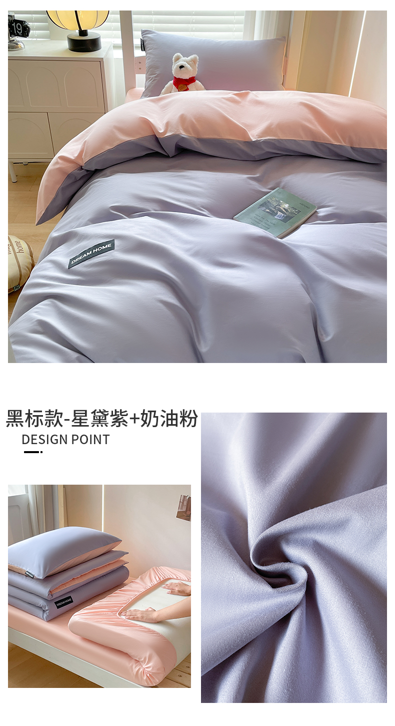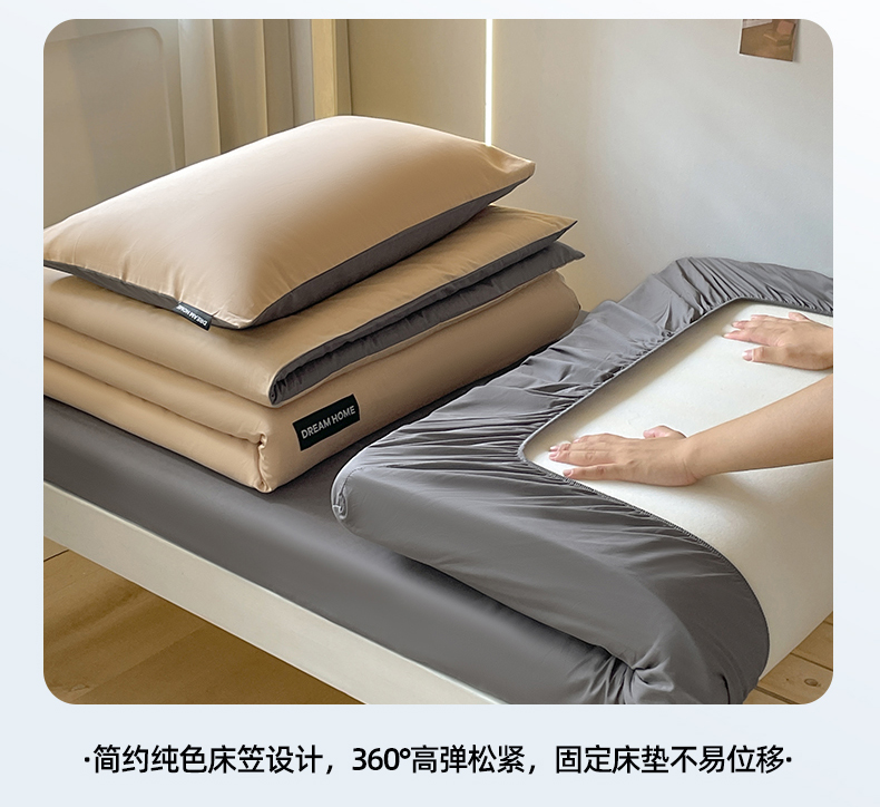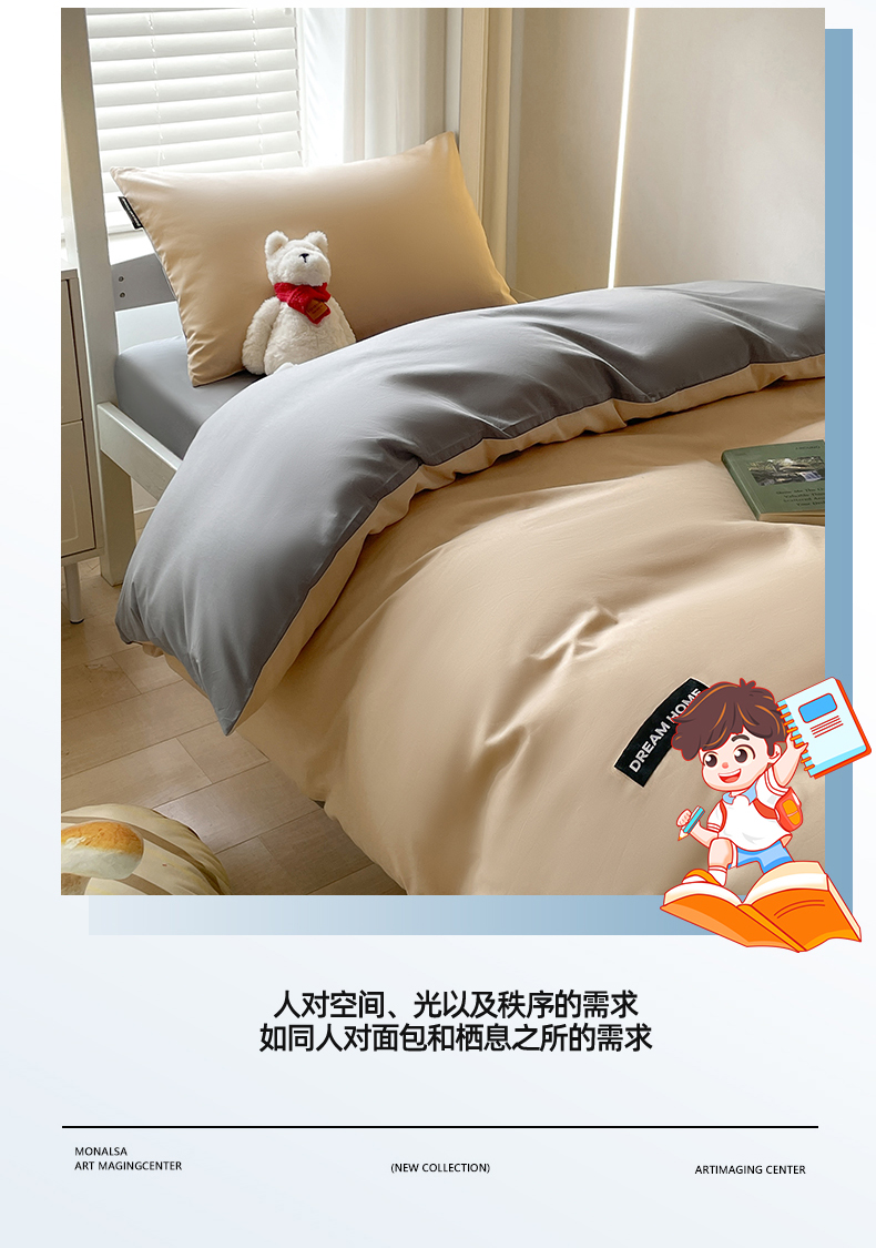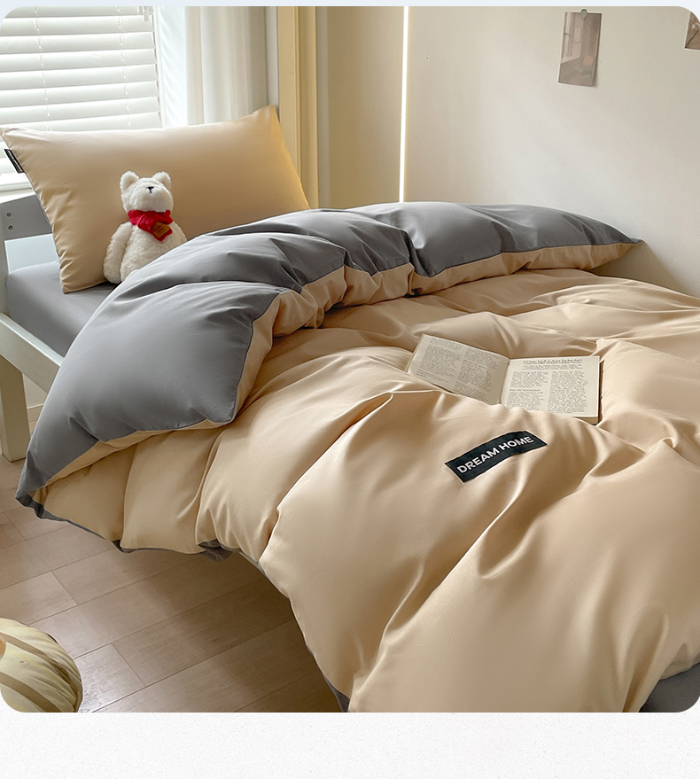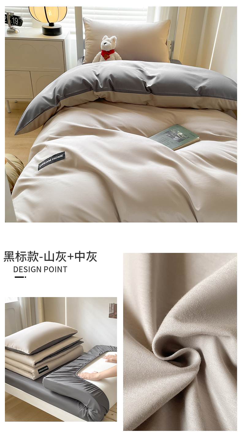 笙意家纺 2025新款全棉纯棉简约黑标学生三件套 黑标款-奶茶+中灰