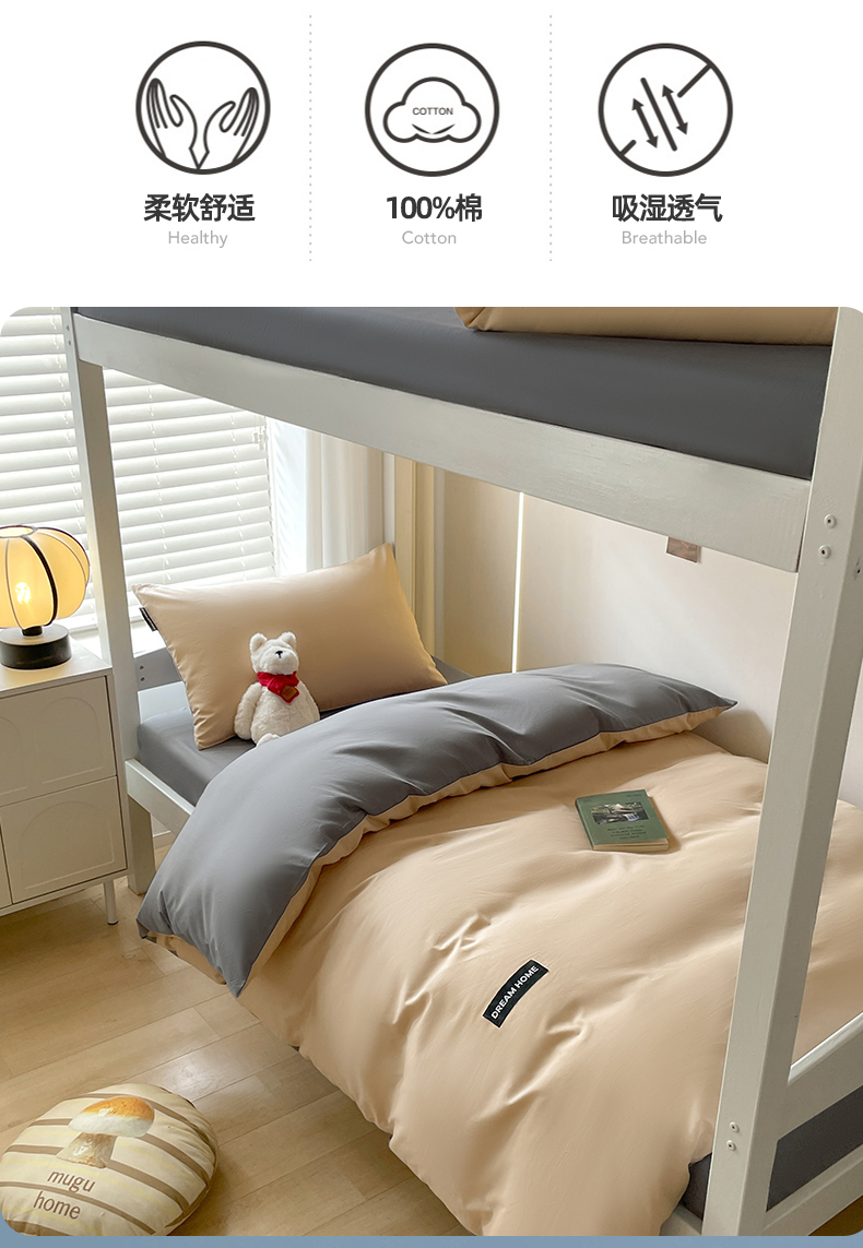 商品名称:笙意家纺 2025新款全棉纯棉简约黑标学生三件套 黑标款-奶茶+中灰