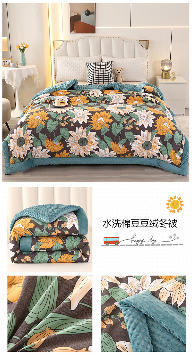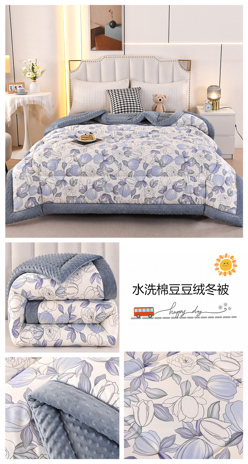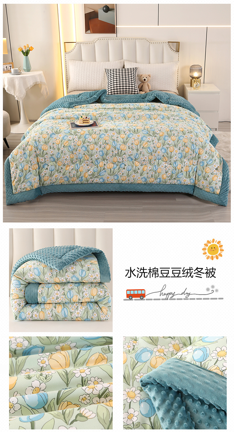 商品名称:欧夏被业 2025新款冬被水洗棉豆豆被芯豆豆绒被子学生春秋被供直播 郁金香
