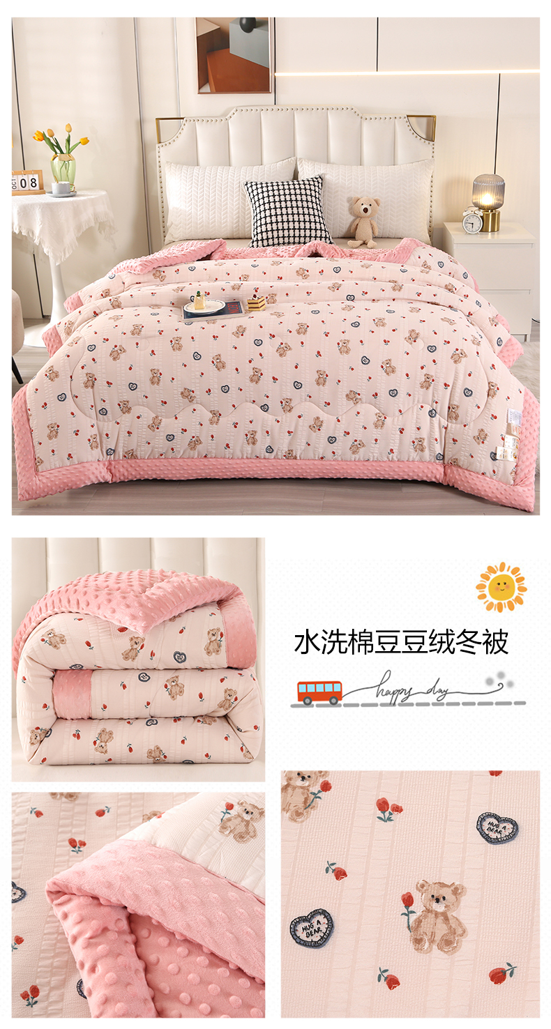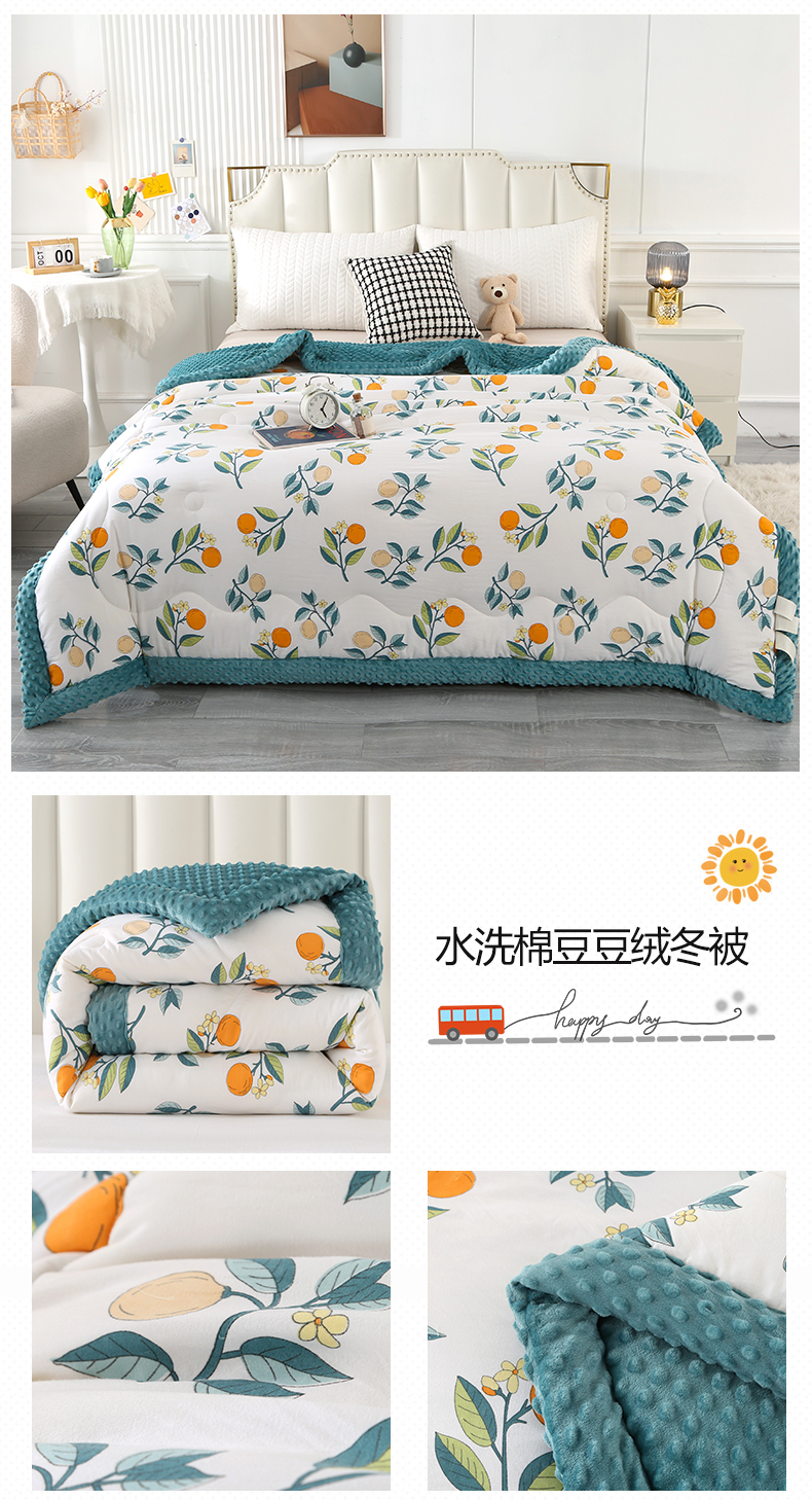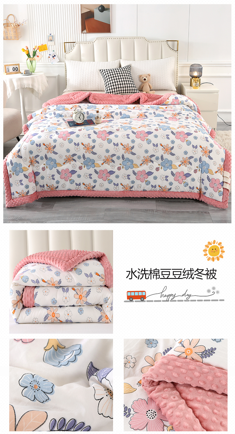 商品名称:欧夏被业 2025新款冬被水洗棉豆豆被芯豆豆绒被子学生春秋被供直播 郁金香