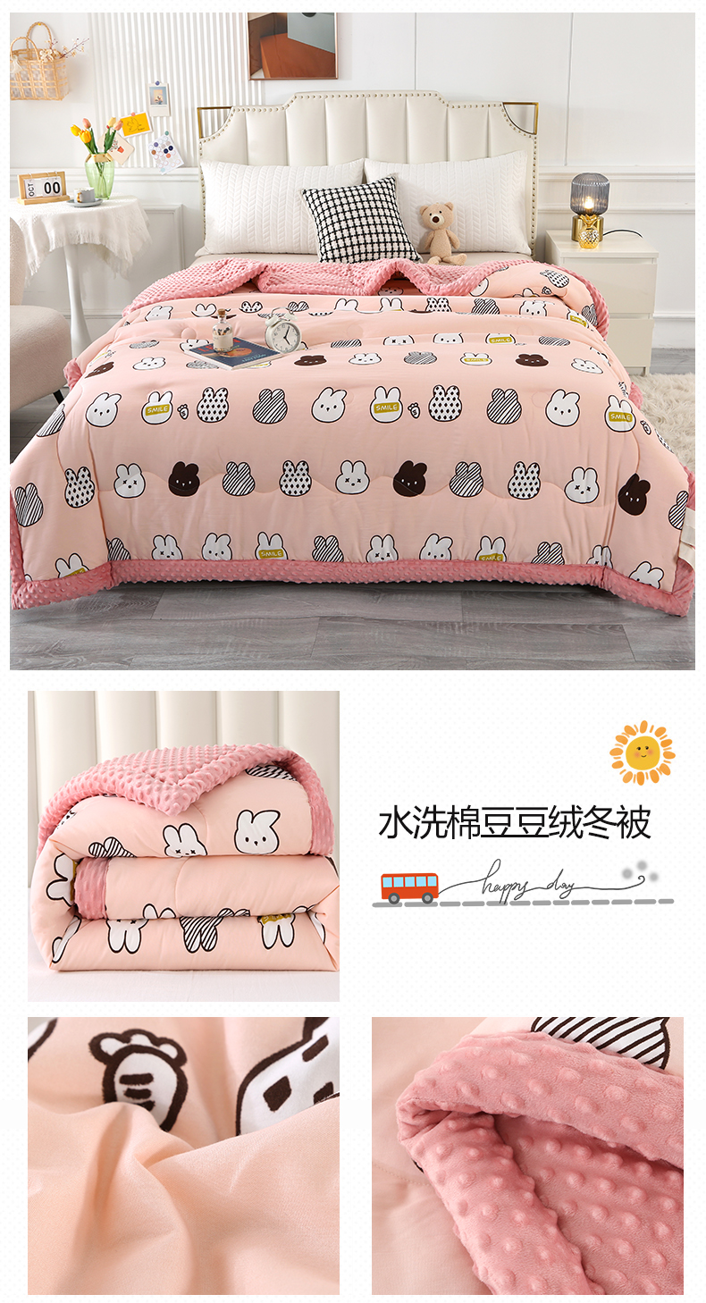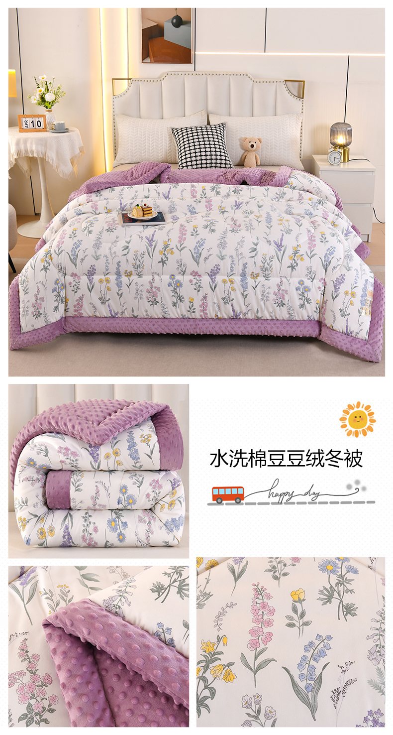 欧夏被业 2025新款冬被水洗棉豆豆被芯豆豆绒被子学生春秋被供直播 郁金香