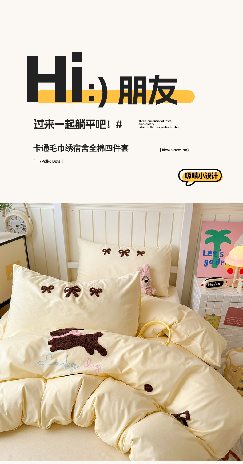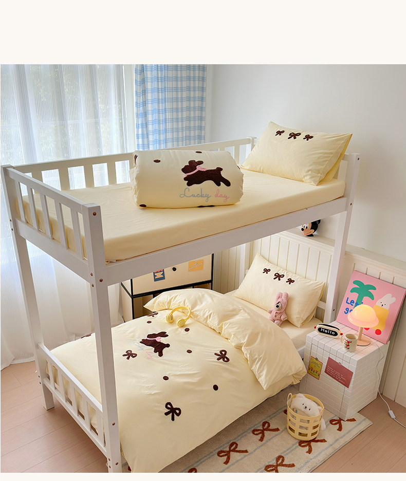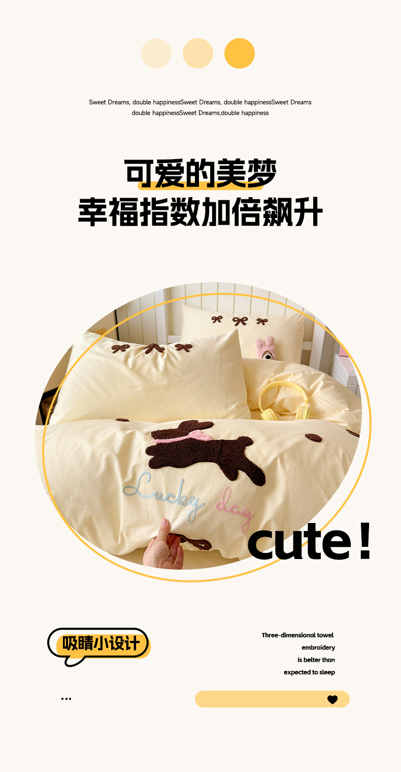当前位置: 91家纺网 > 商品网购 > 床品套件 > 三件套 > 锦觅 2025新款学生季全棉纯棉毛巾绣三件套奶油小清新刺绣四件套(全文件大图以及买家秀) 奶油兔兔