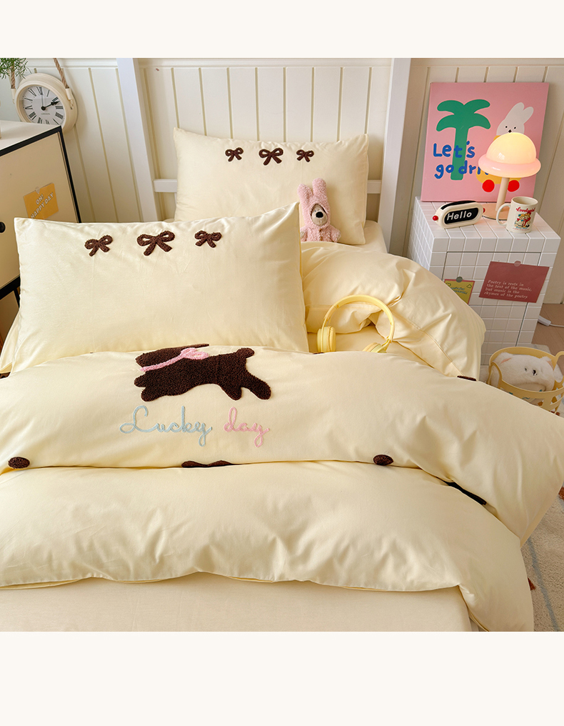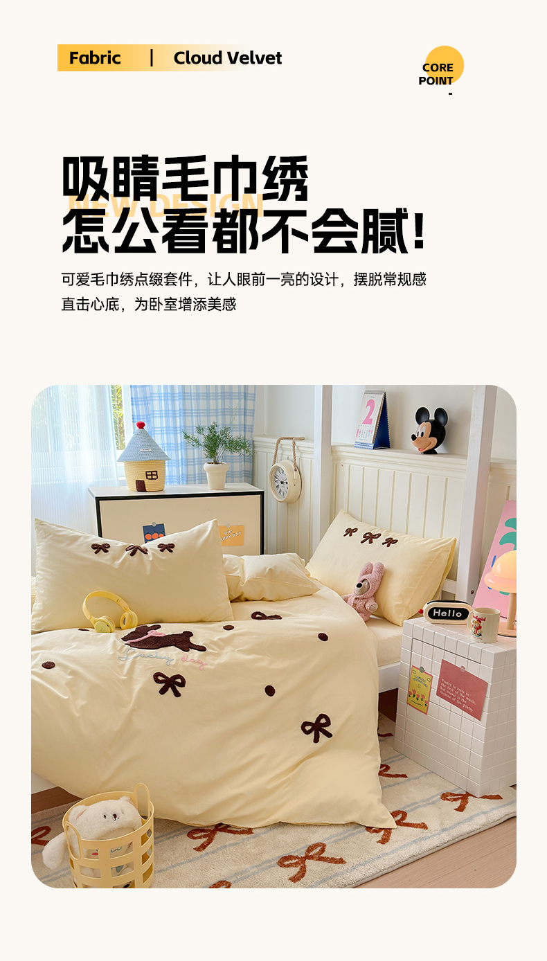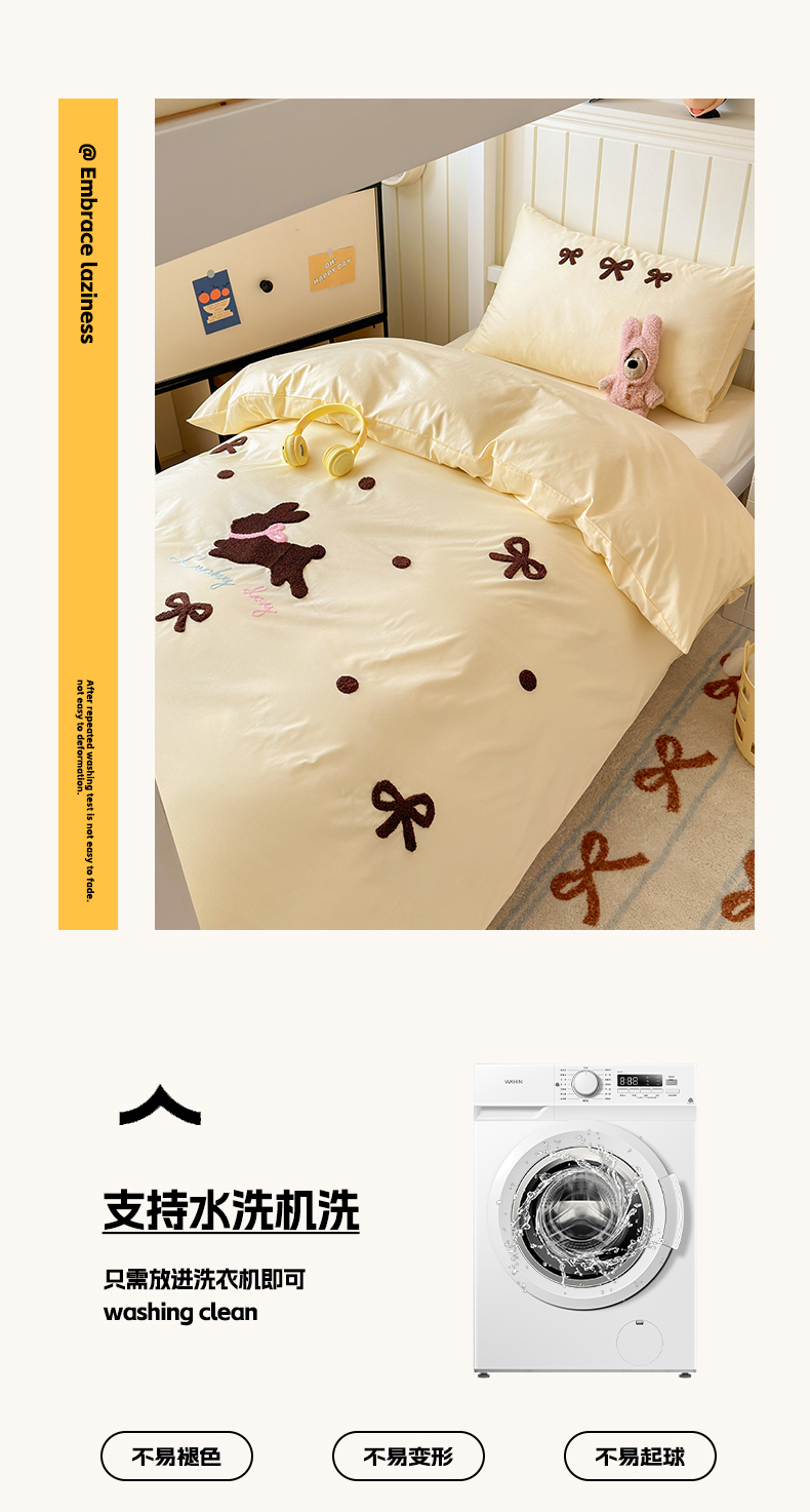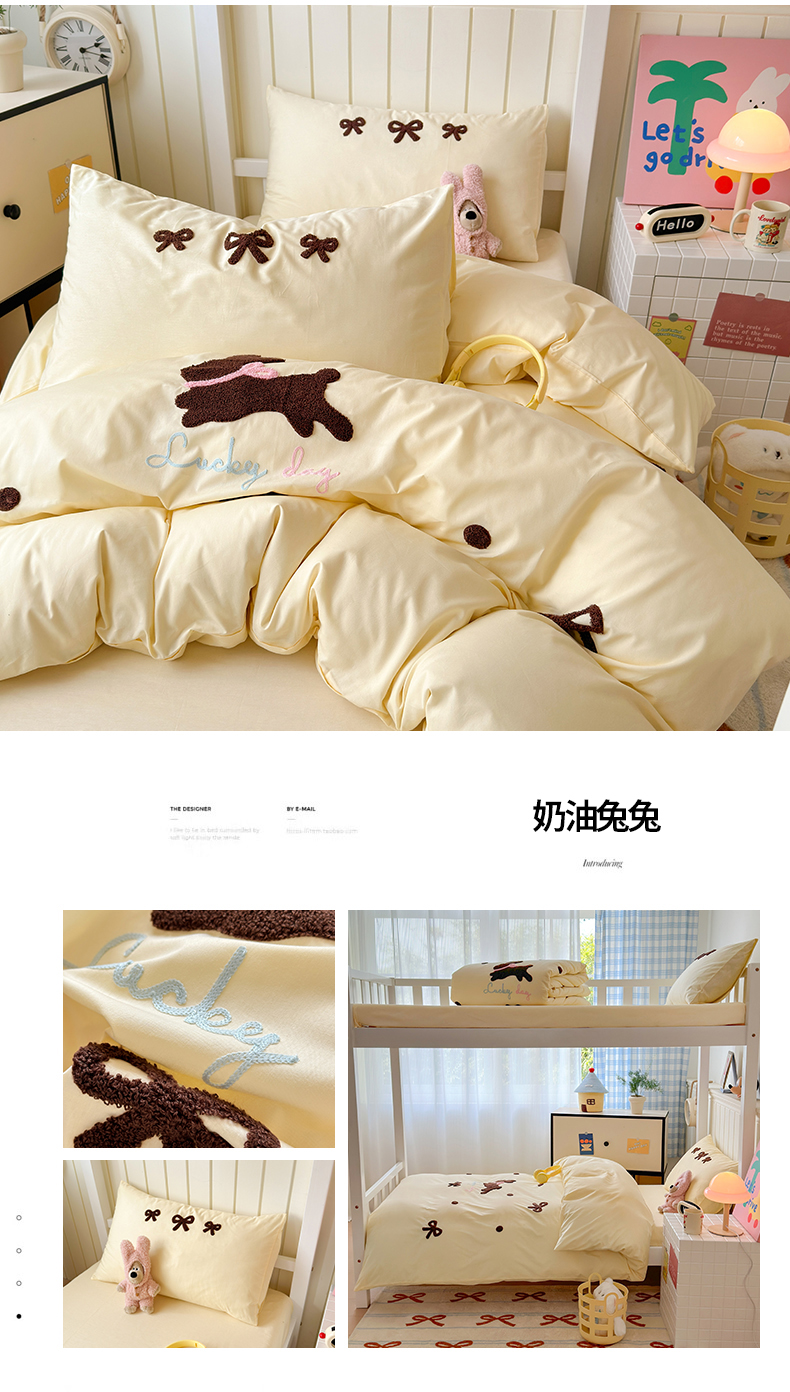 当前位置: 91家纺网 > 商品网购 > 床品套件 > 三件套 > 锦觅 2025新款学生季全棉纯棉毛巾绣三件套奶油小清新刺绣四件套(全文件大图以及买家秀) 奶油兔兔