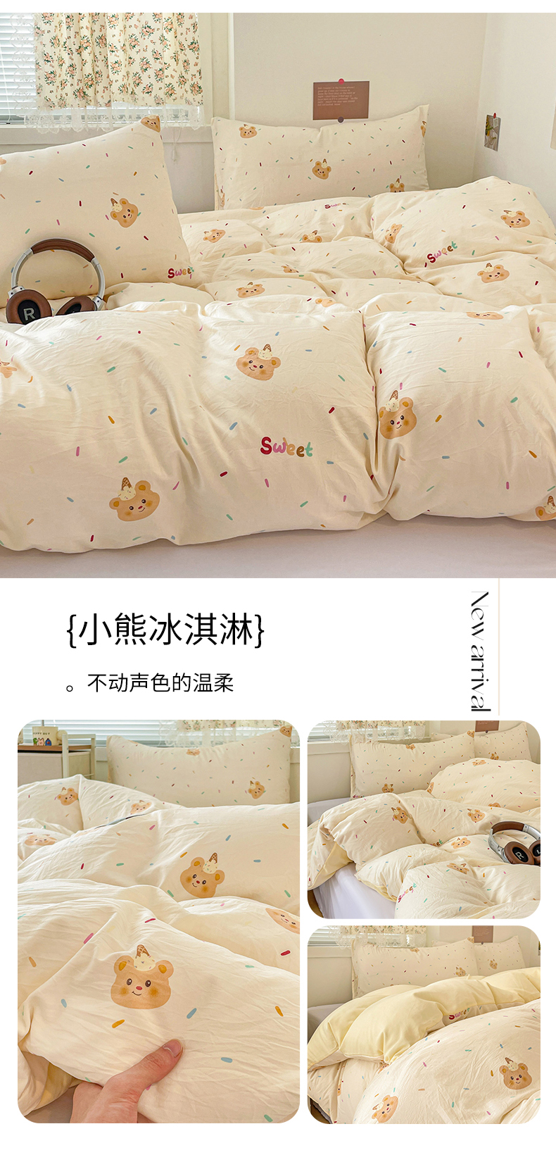商品名称:纽曼2025新款纯棉水洗棉单品被套 小熊冰淇淋