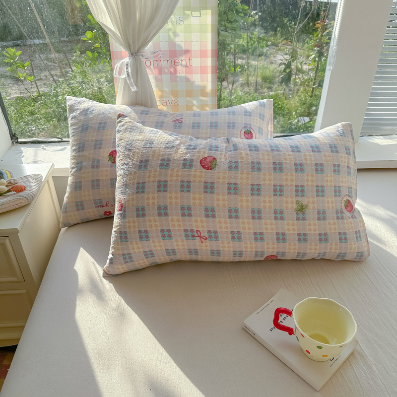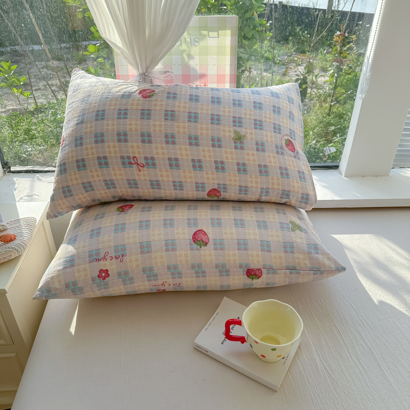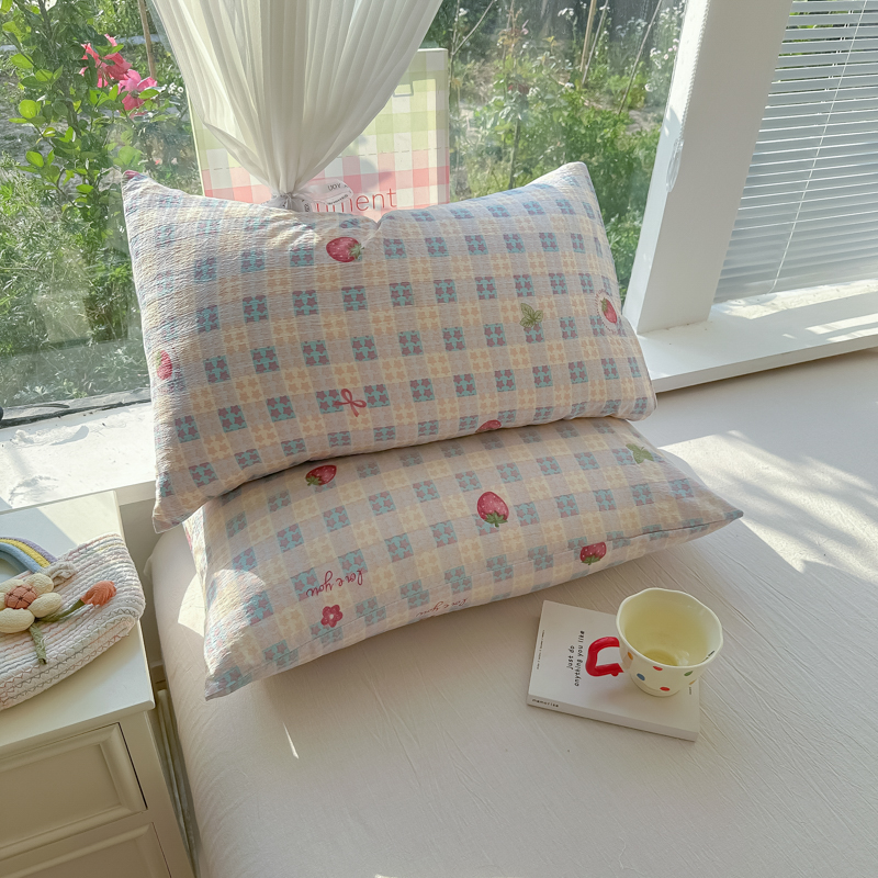 商品名称:韩巢家纺 2025新款云感提花双层纱枕套头套枕芯套 有草莓的地方