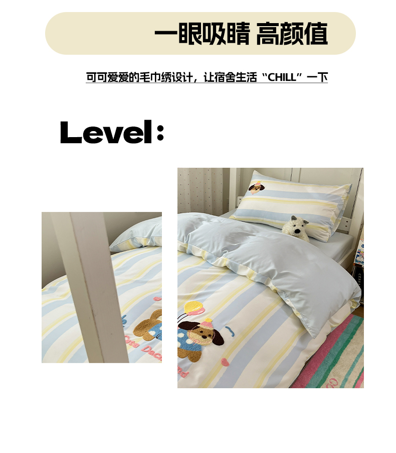 当前位置: 91家纺网 > 商品网购 > 床品套件 > 三件套 > 如一 2025新款A类卡通毛巾绣水洗云朵棉学生宿舍床三件套 可爱狗