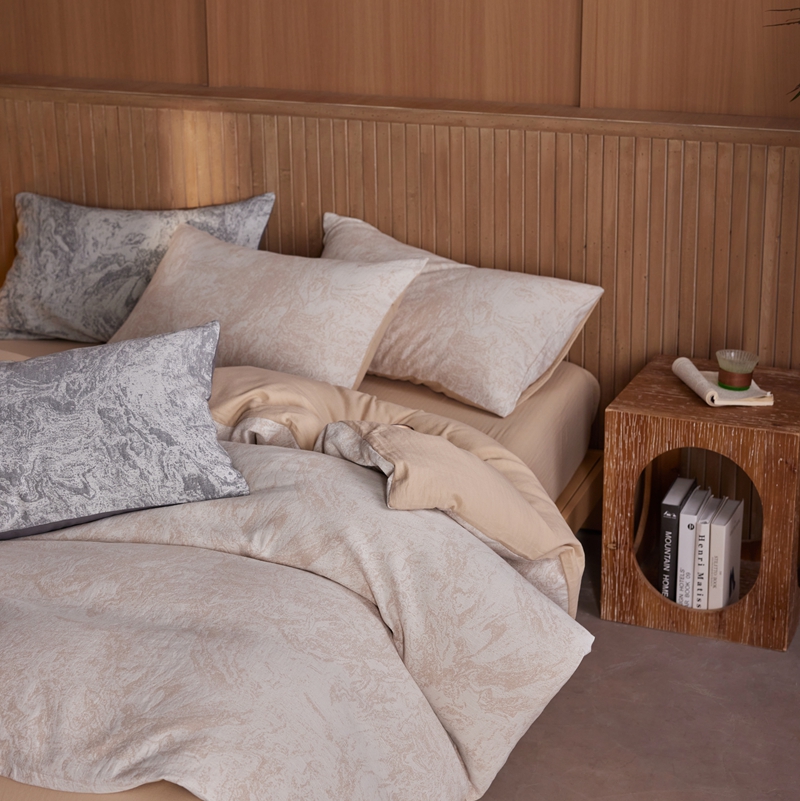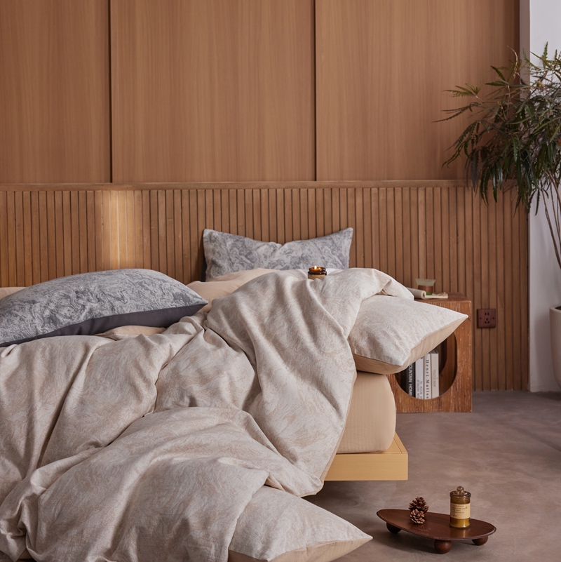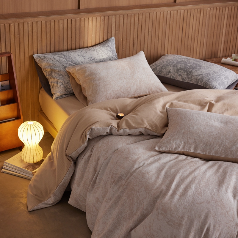 (总)梦享生活家居 2025新款双层纱提花四件套-砚秋系列,砚秋粉,砚秋灰,砚秋咖,砚秋焦糖