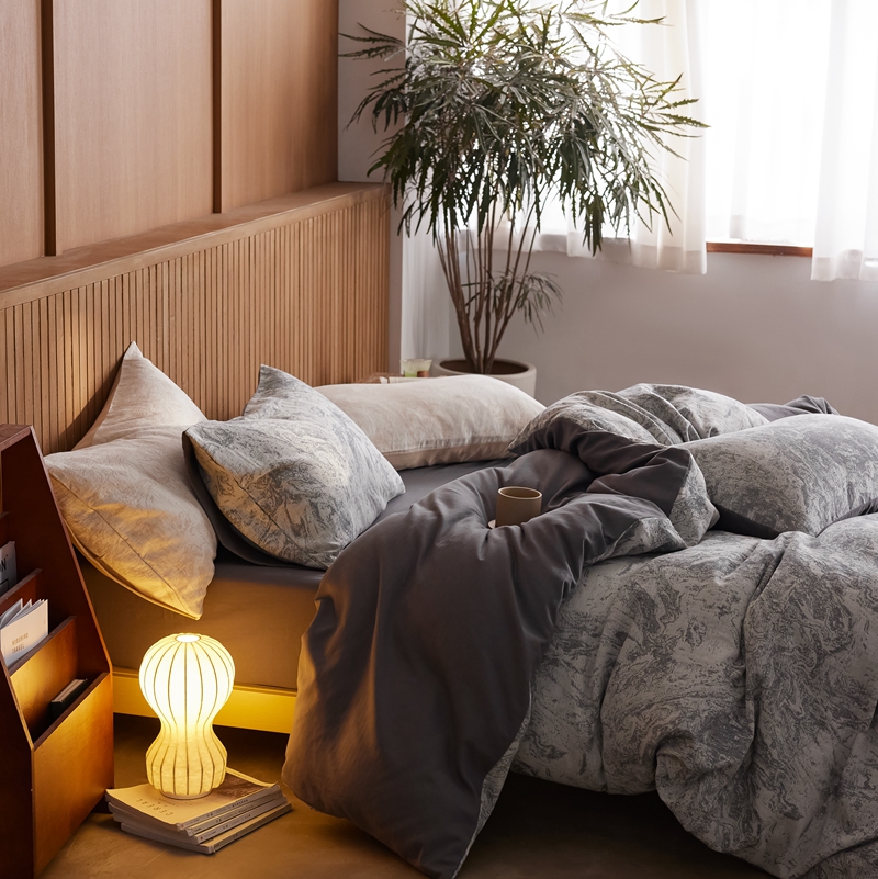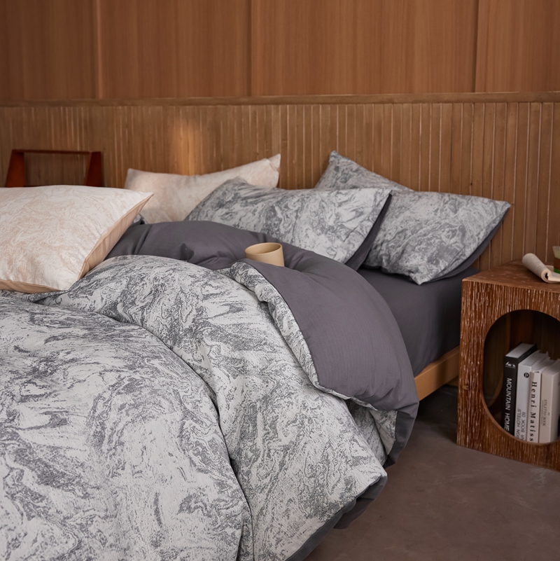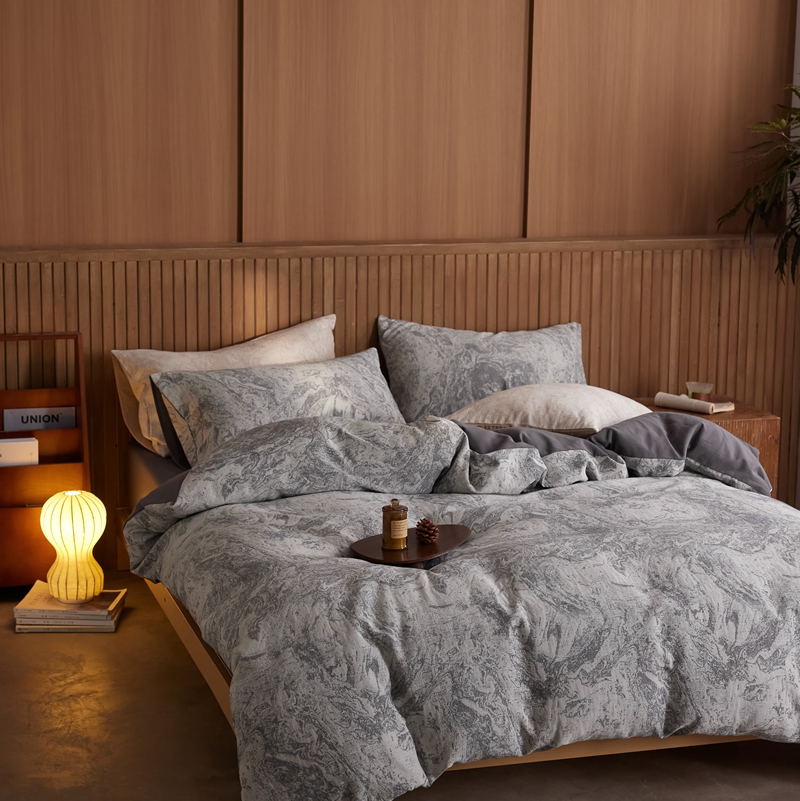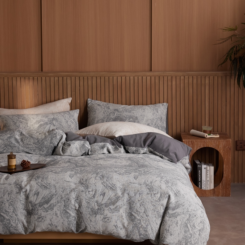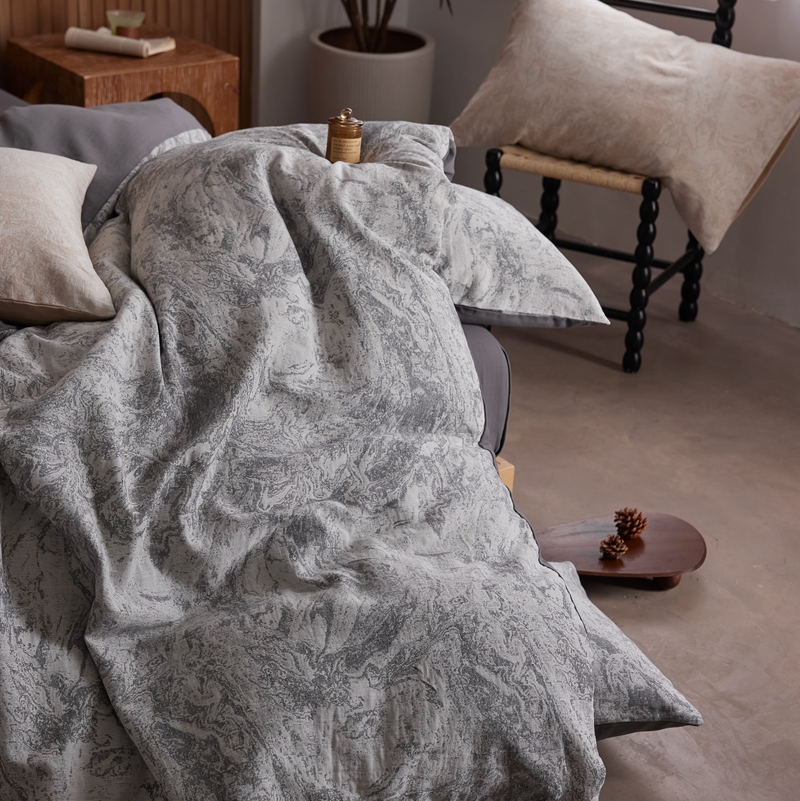 (总)梦享生活家居 2025新款全棉肌理纹提花四件套,灰黑色