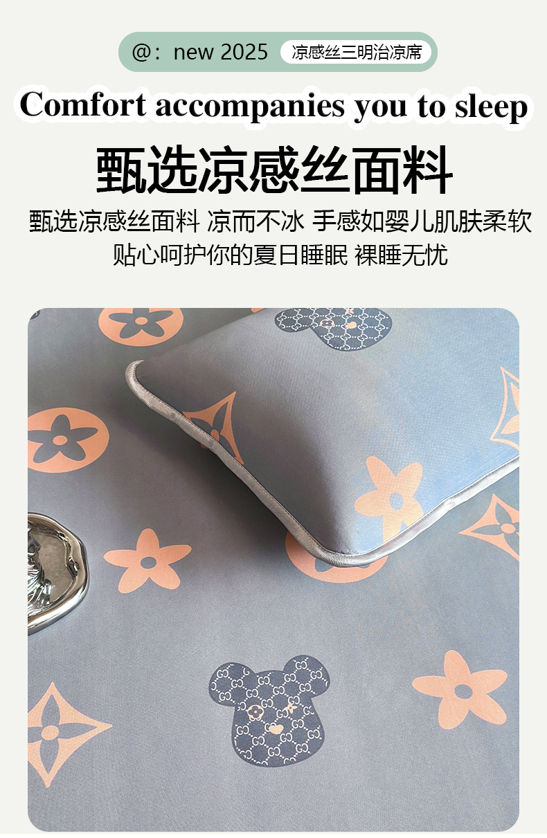 乐居家纺 2025新款凉感丝三明治床笠款凉席席子 布莱迪