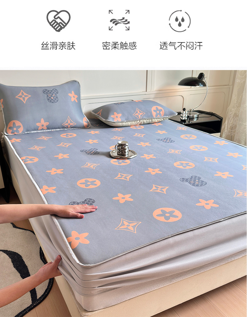(总)乐居家纺 2025新款亲肤舒适活性印染水洗冰丝单床单,芳菲-灰,芳菲-蓝,古色古香,国色天香-粉,空谷幽兰-粉,米妮兔-卡,米妮兔-绿,蒲公英-蓝,千鸟格熊-灰,千鸟格熊-蓝,熊猫-灰,银杏叶-绿,组合