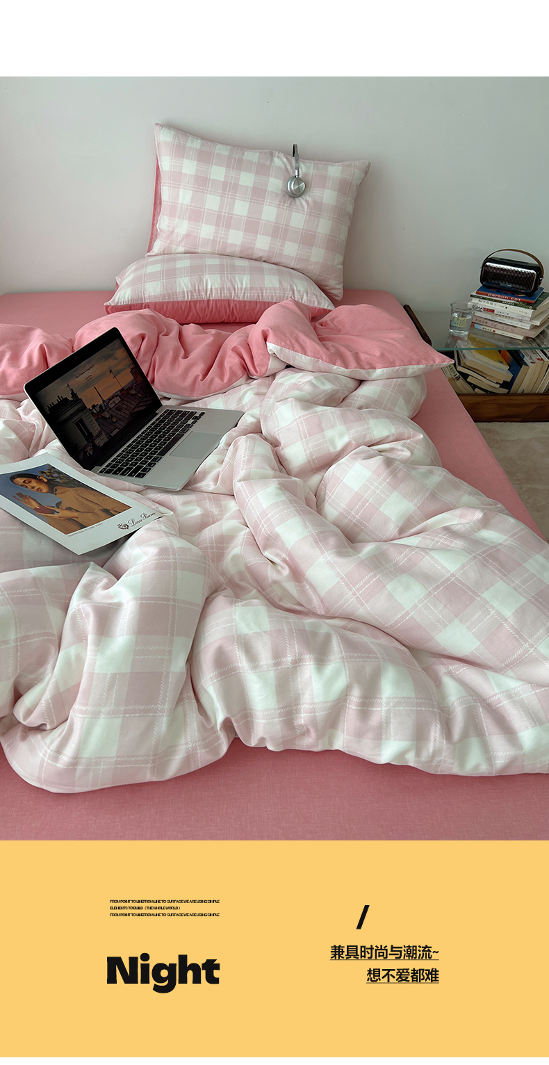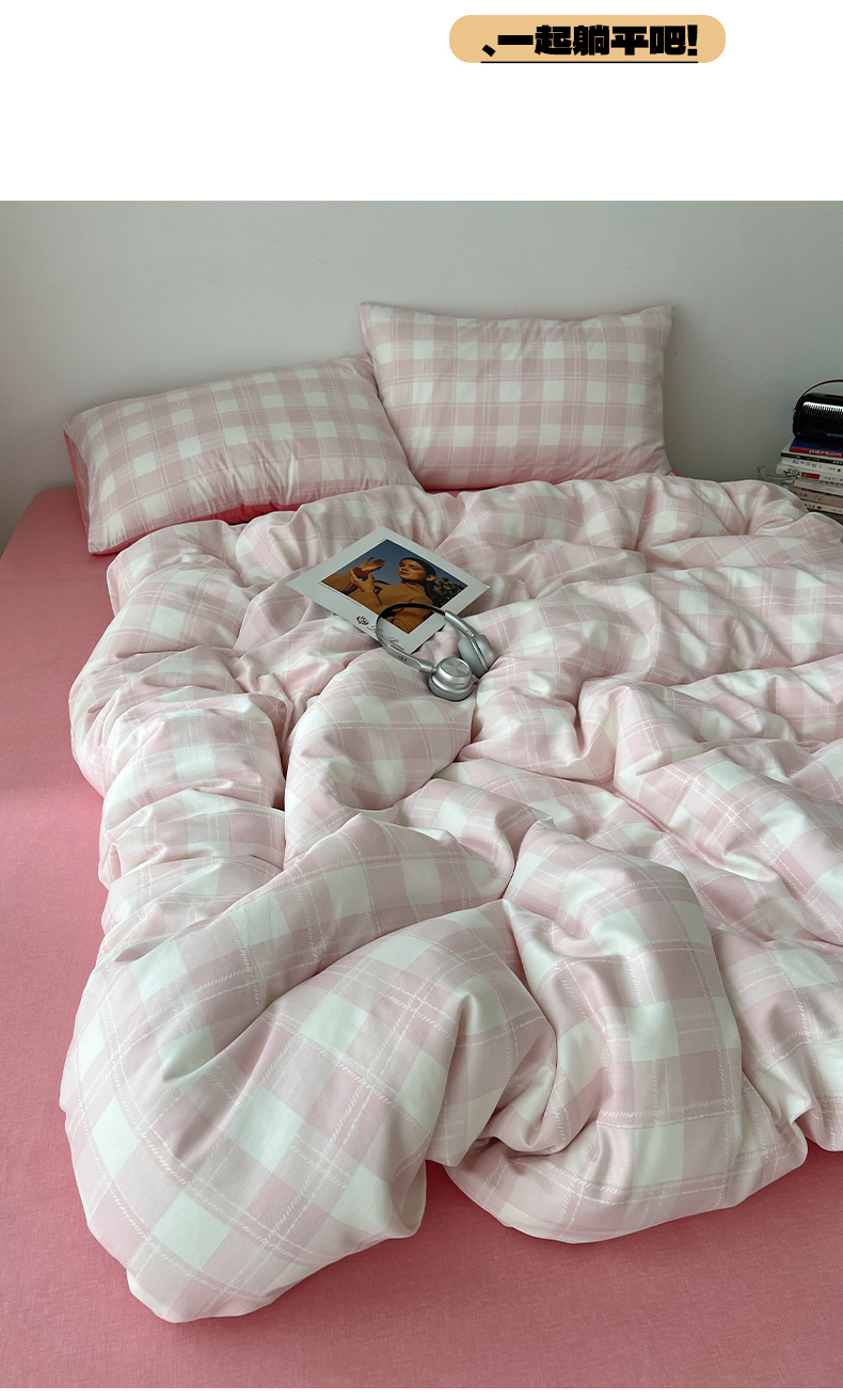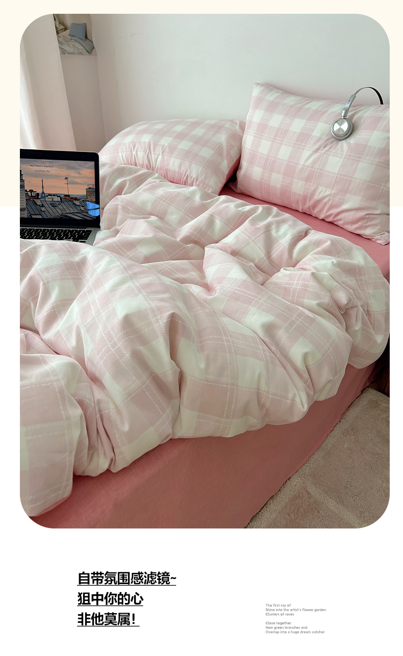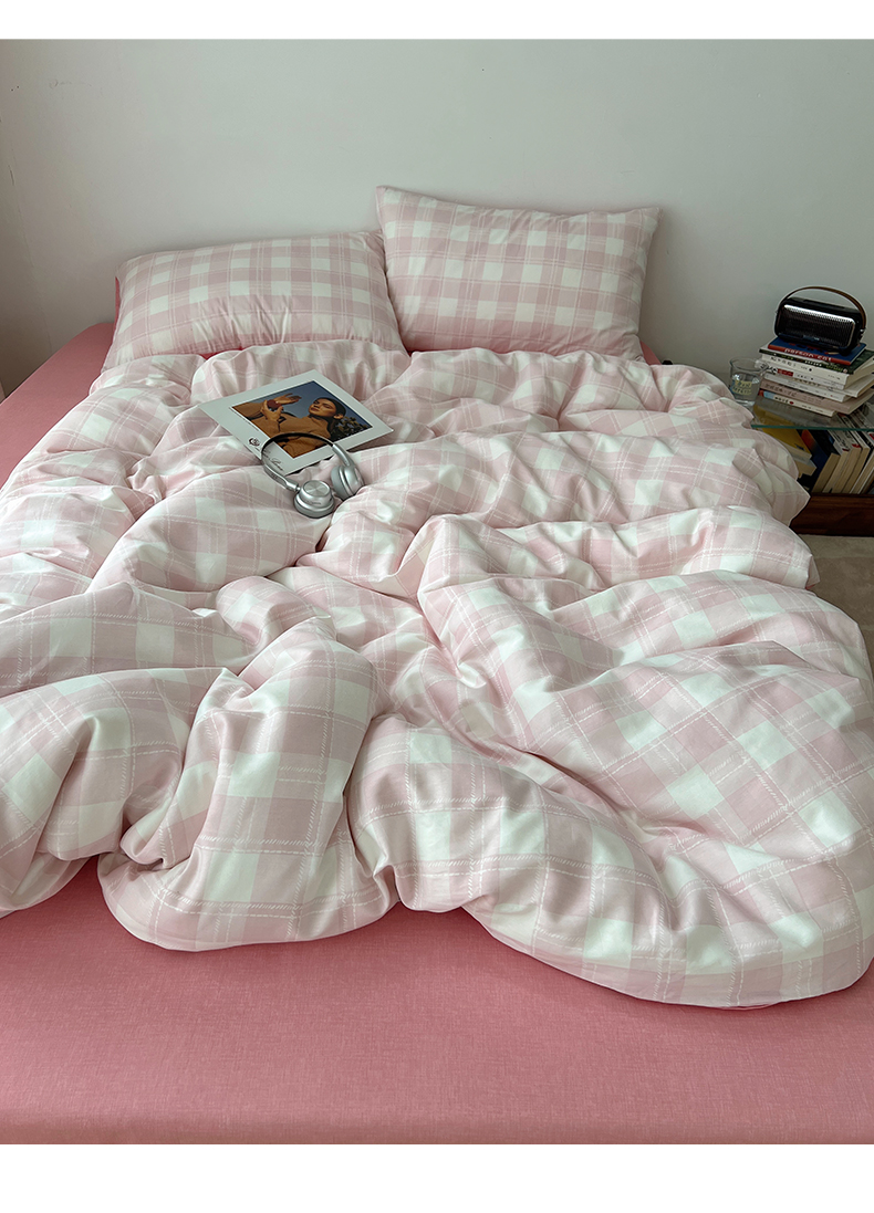 当前位置: 91家纺网 > 商品网购 > 床品套件 > 四件套 > 全棉普通四件套 > 雅居纺家纺 2025春夏新款全棉纯棉印花四件套 粉大格