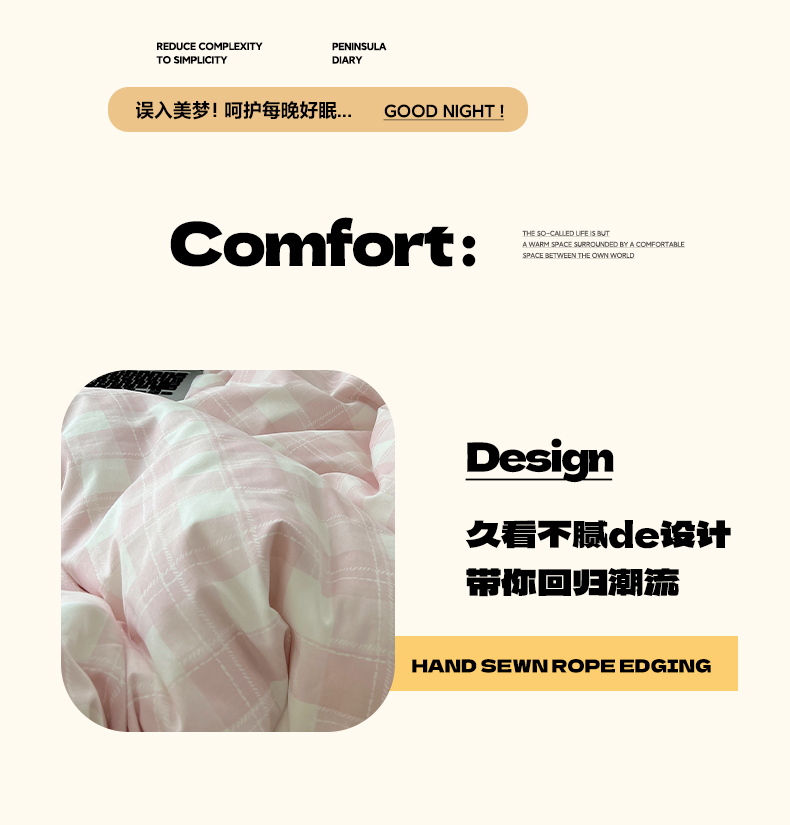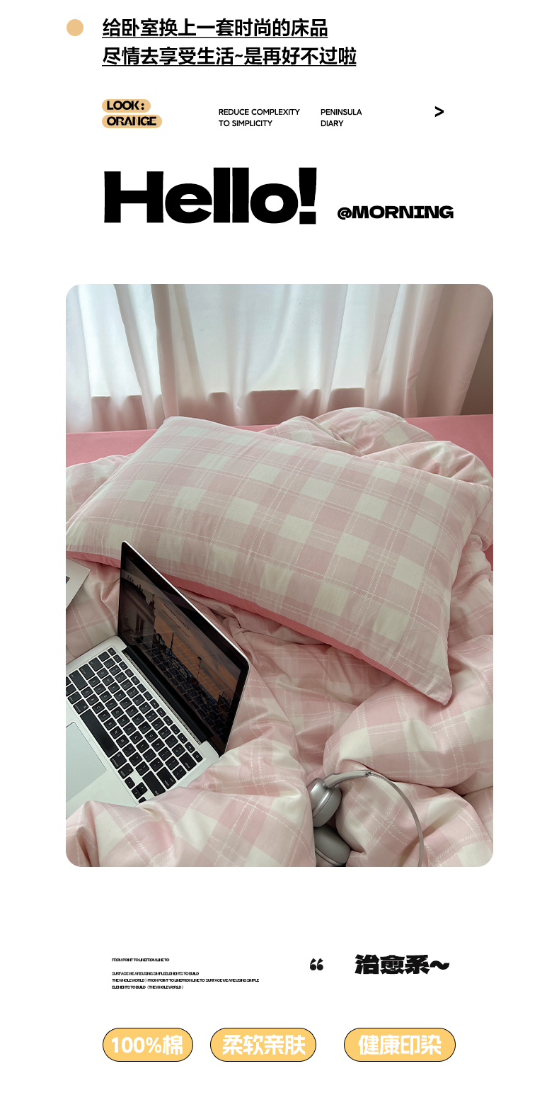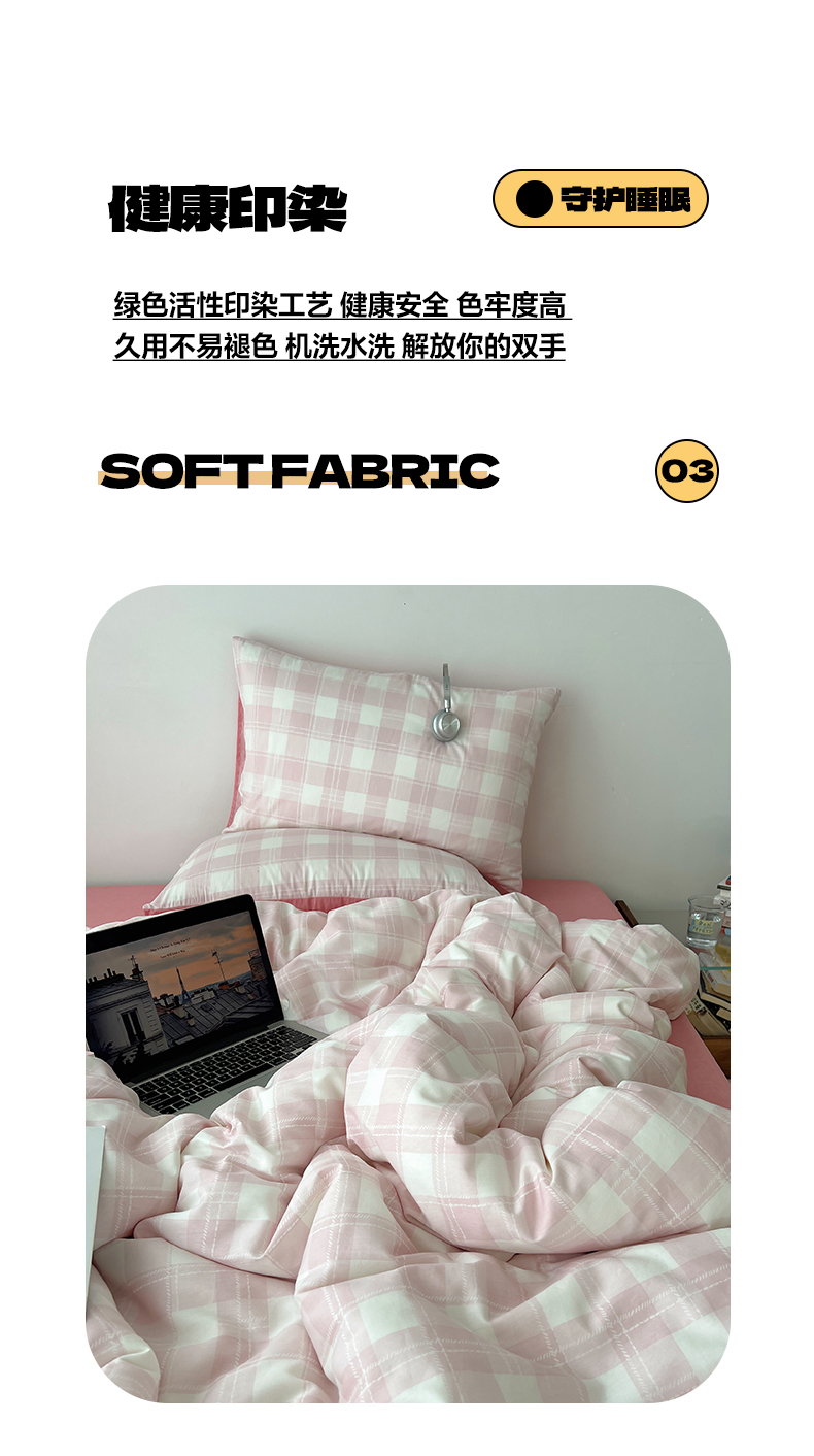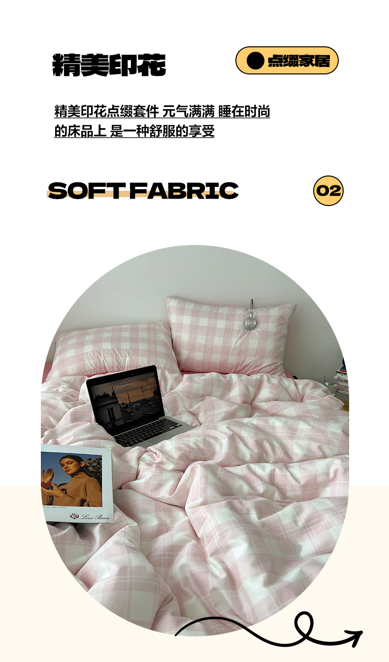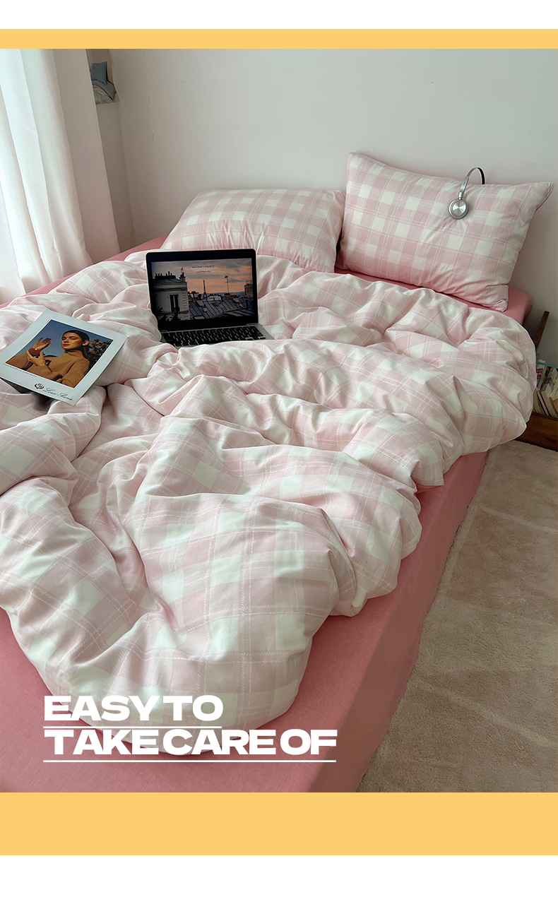 当前位置: 91家纺网 > 商品网购 > 床品套件 > 四件套 > 全棉普通四件套 > 雅居纺家纺 2025春夏新款全棉纯棉印花四件套 粉大格