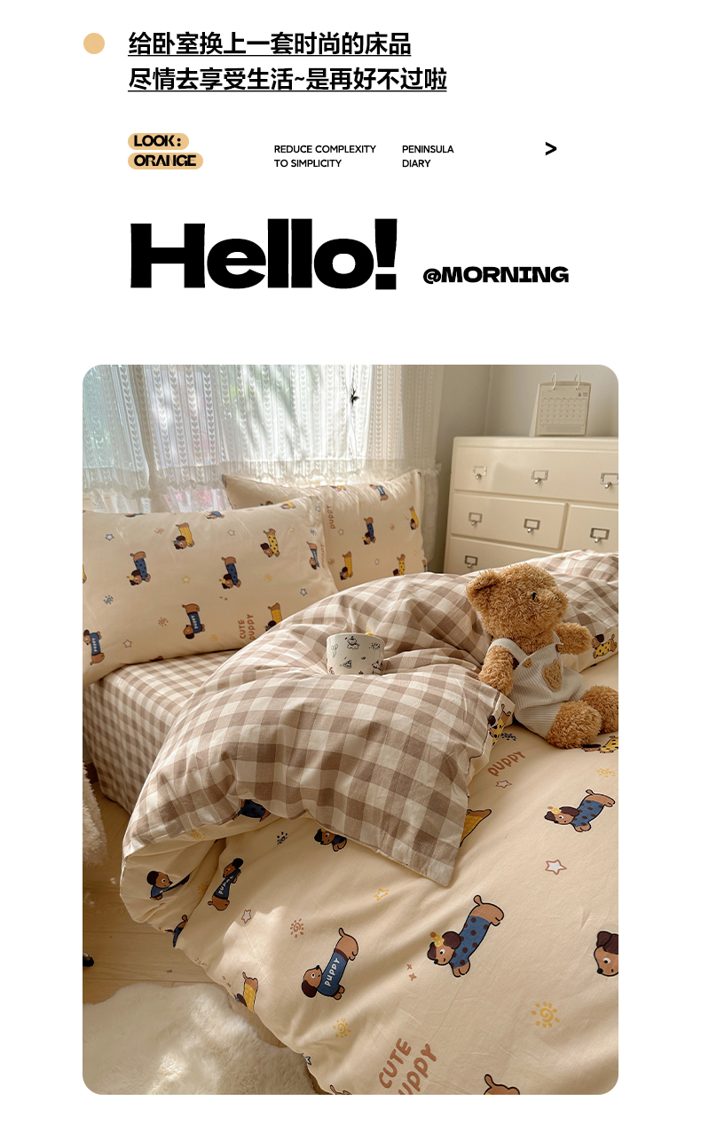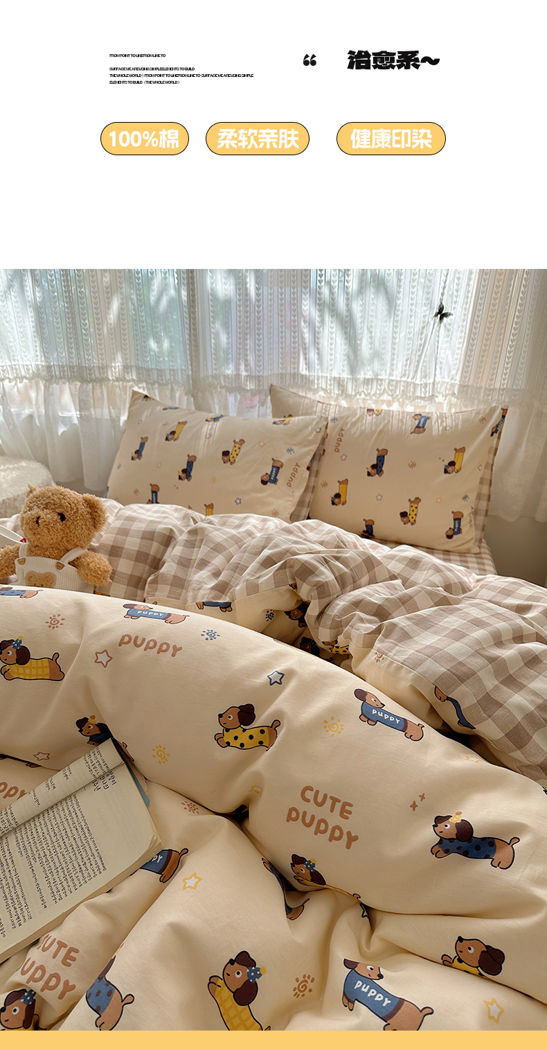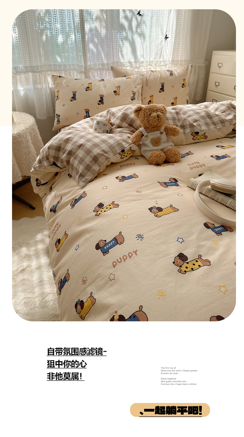 当前位置: 91家纺网 > 商品网购 > 床品套件 > 四件套 > 全棉普通四件套 > 雅居纺家纺 2025春夏新款全棉纯棉印花四件套 腊肠狗队长