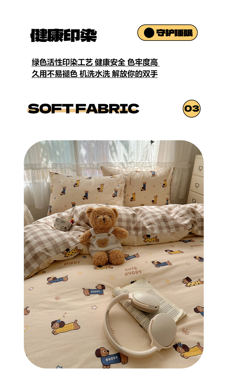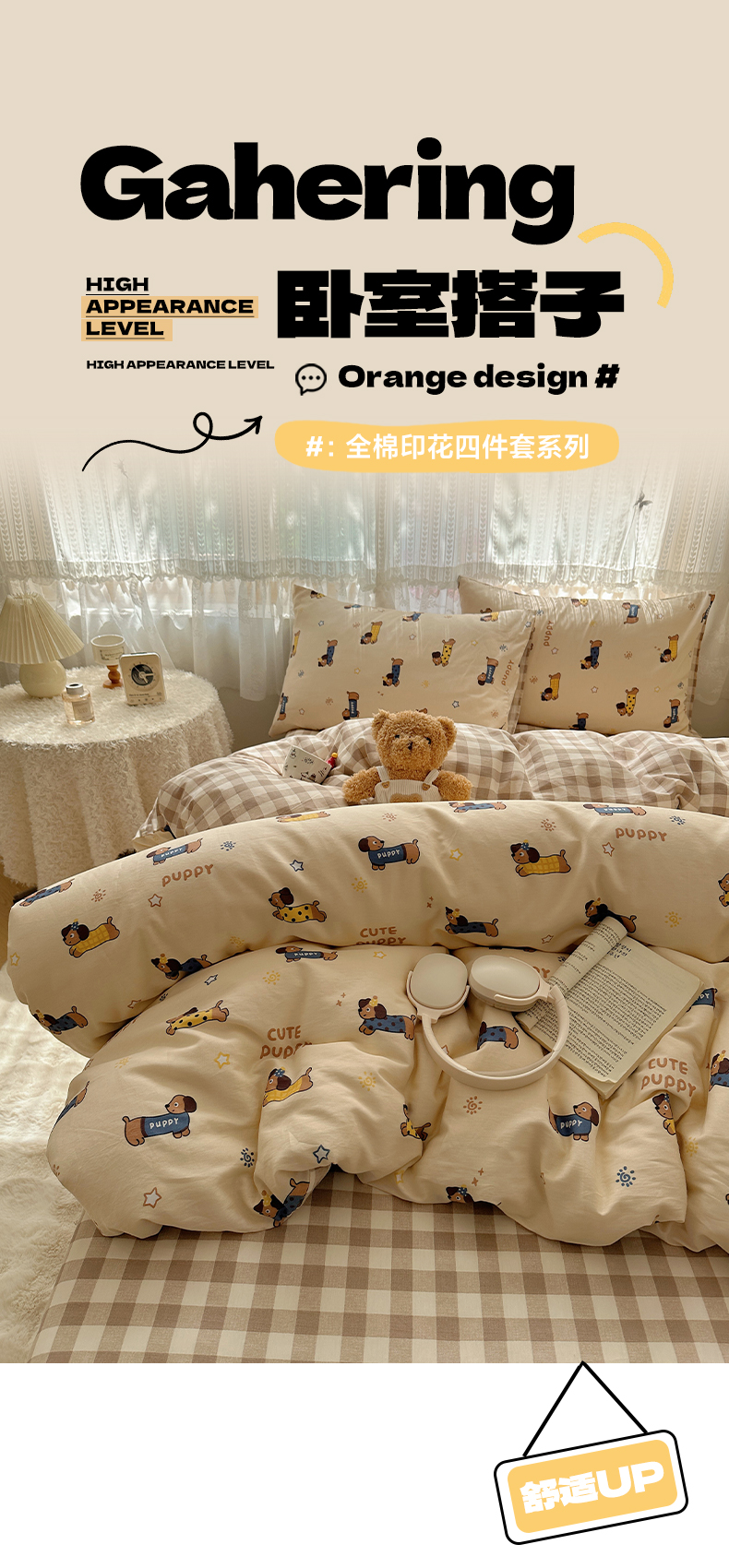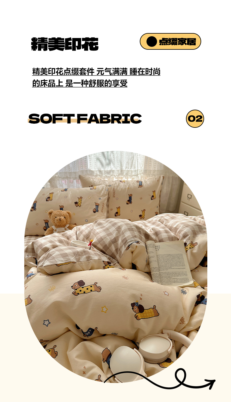 当前位置: 91家纺网 > 商品网购 > 床品套件 > 四件套 > 全棉普通四件套 > 雅居纺家纺 2025春夏新款全棉纯棉印花四件套 腊肠狗队长