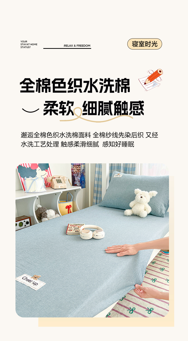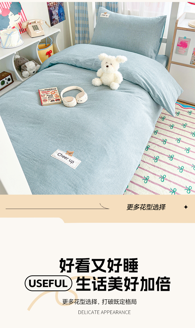 佳笠家居 2025新款kimi熊系列A类宿舍全棉纯棉色织水洗棉学生三件套 丈兰小条