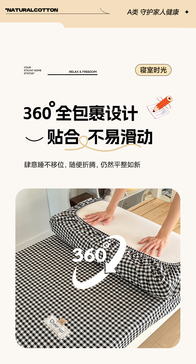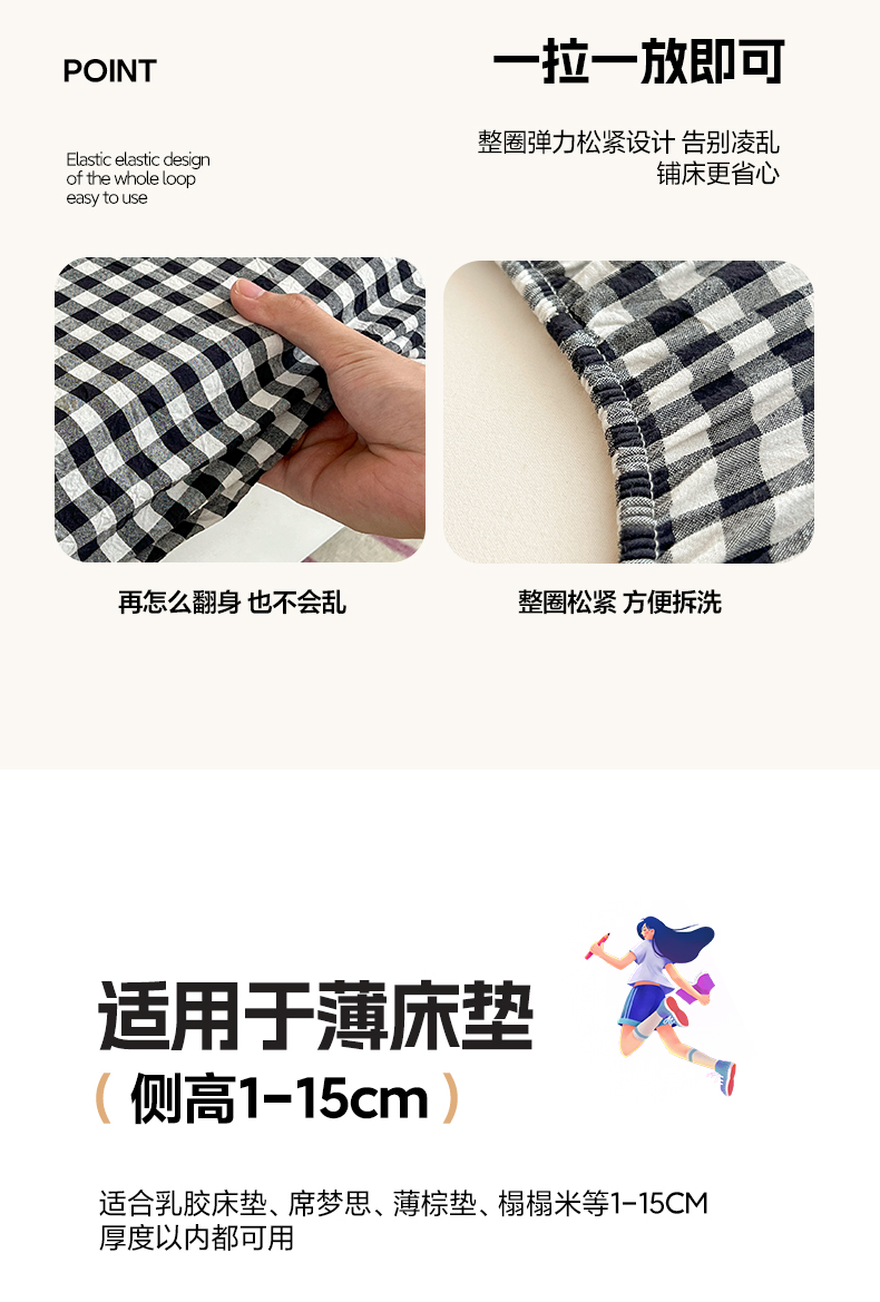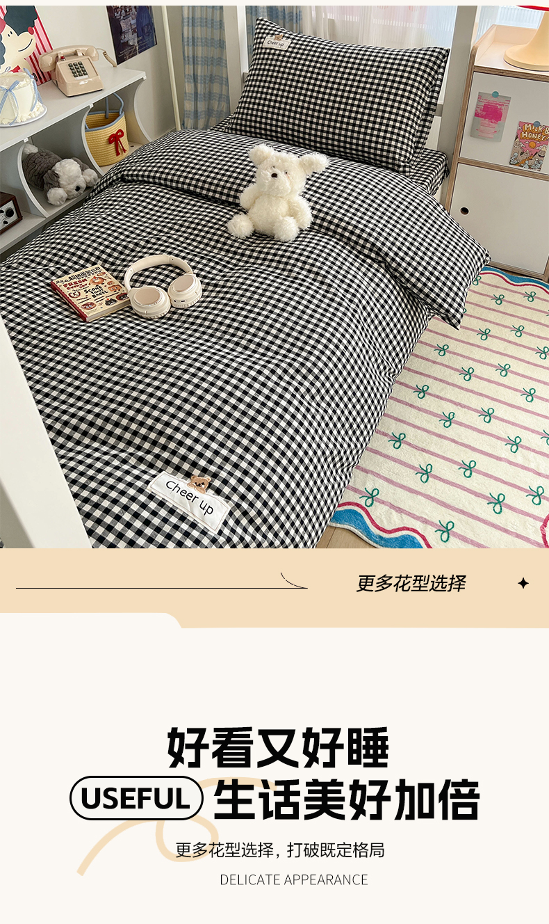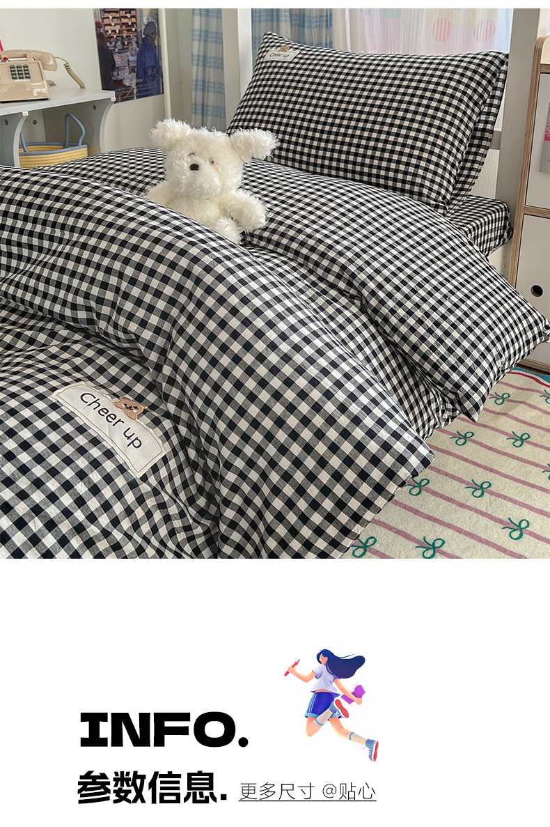 佳笠家居 2025新款kimi熊系列A类宿舍全棉纯棉色织水洗棉床笠单床笠床笠单件 黑白格