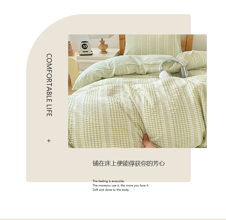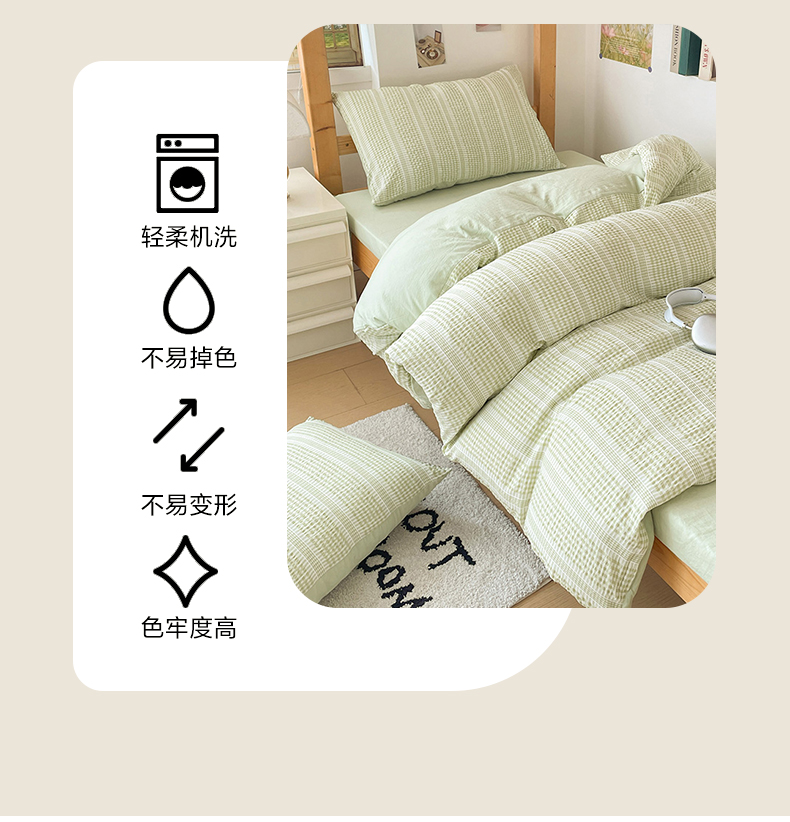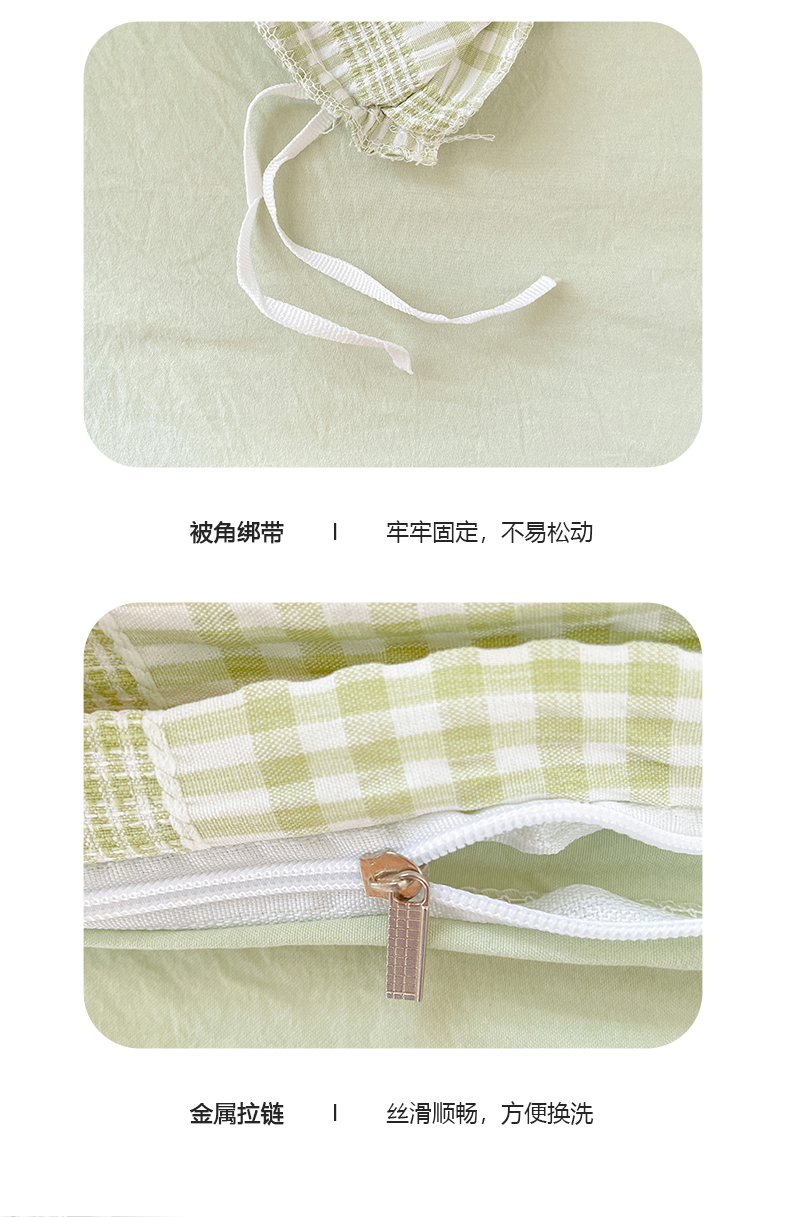 商品名称:卡普家居 2025新款阳离子公主格学生三件套 阳离子公主格抹茶绿