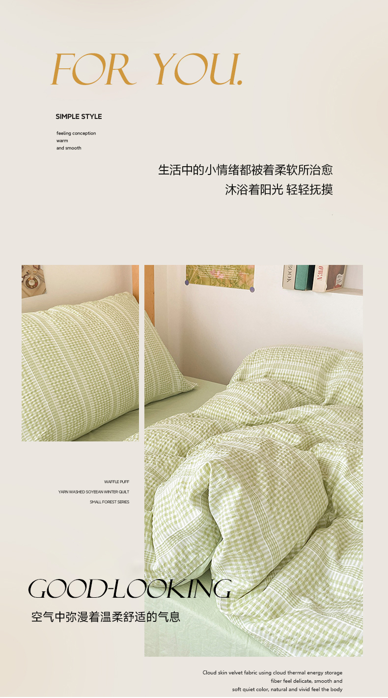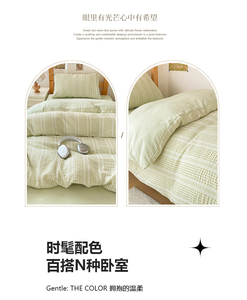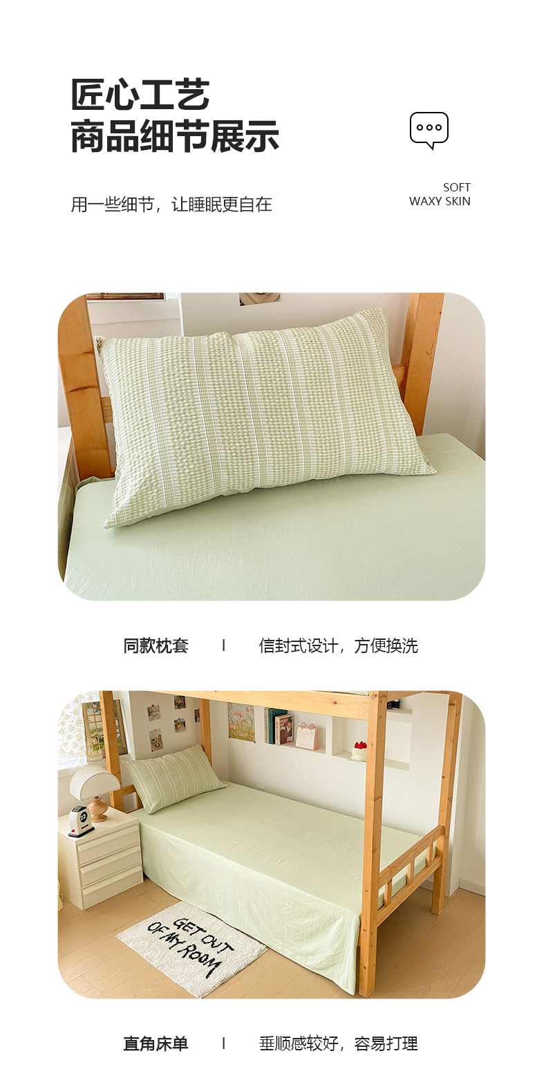 卡普家居 2025新款阳离子公主格学生三件套 阳离子公主格抹茶绿