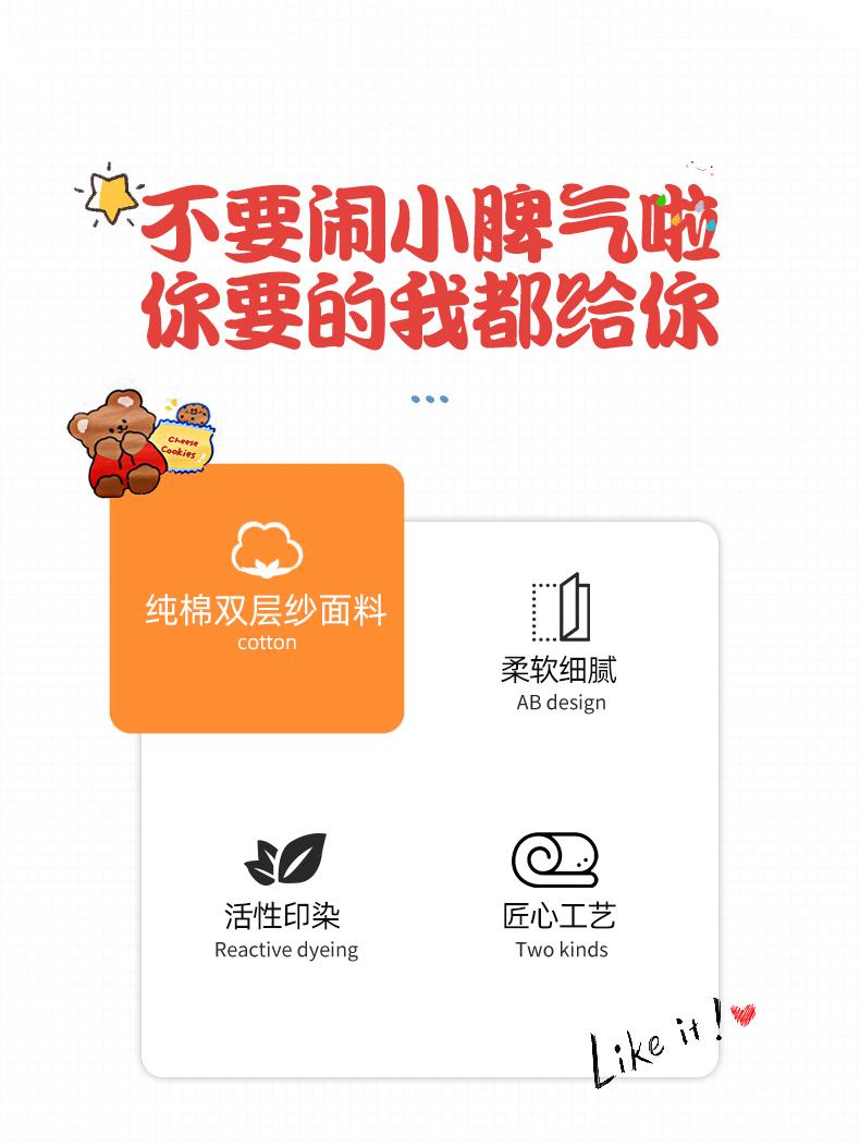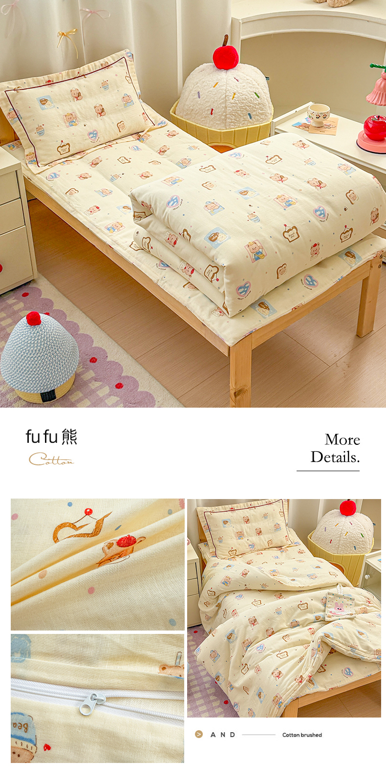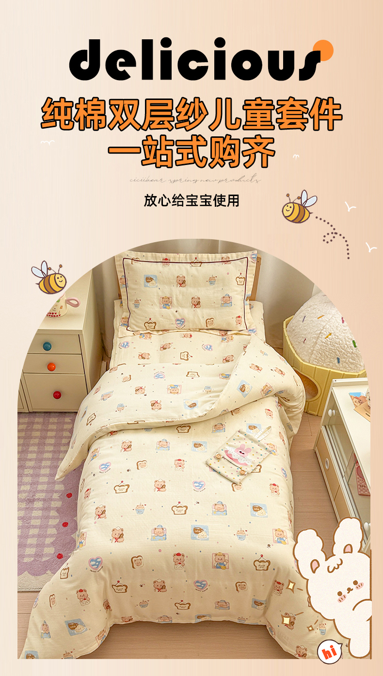 当前位置: 91家纺网 > 商品网购 > 床品套件 > 四件套 > 其它四件套 > 简宜家居(朝初家纺) 2025新款幼儿园双层纱套件 fu fu 熊