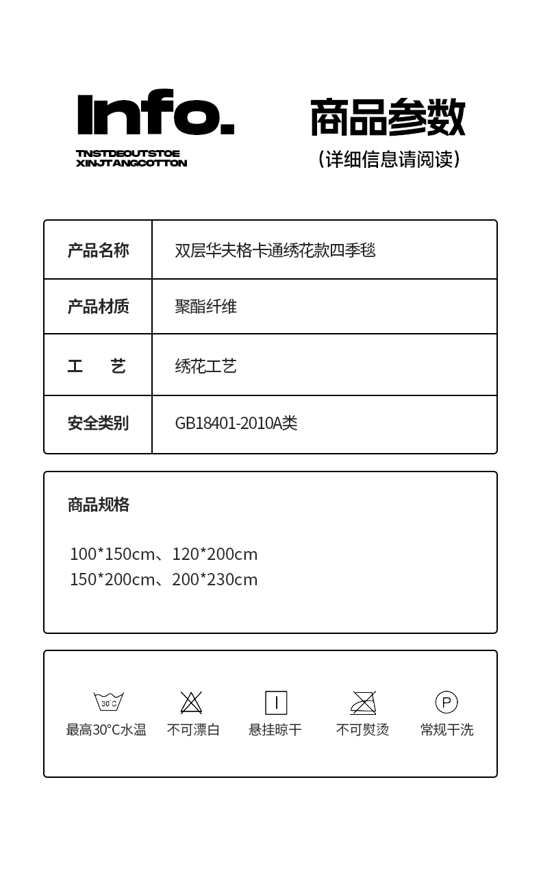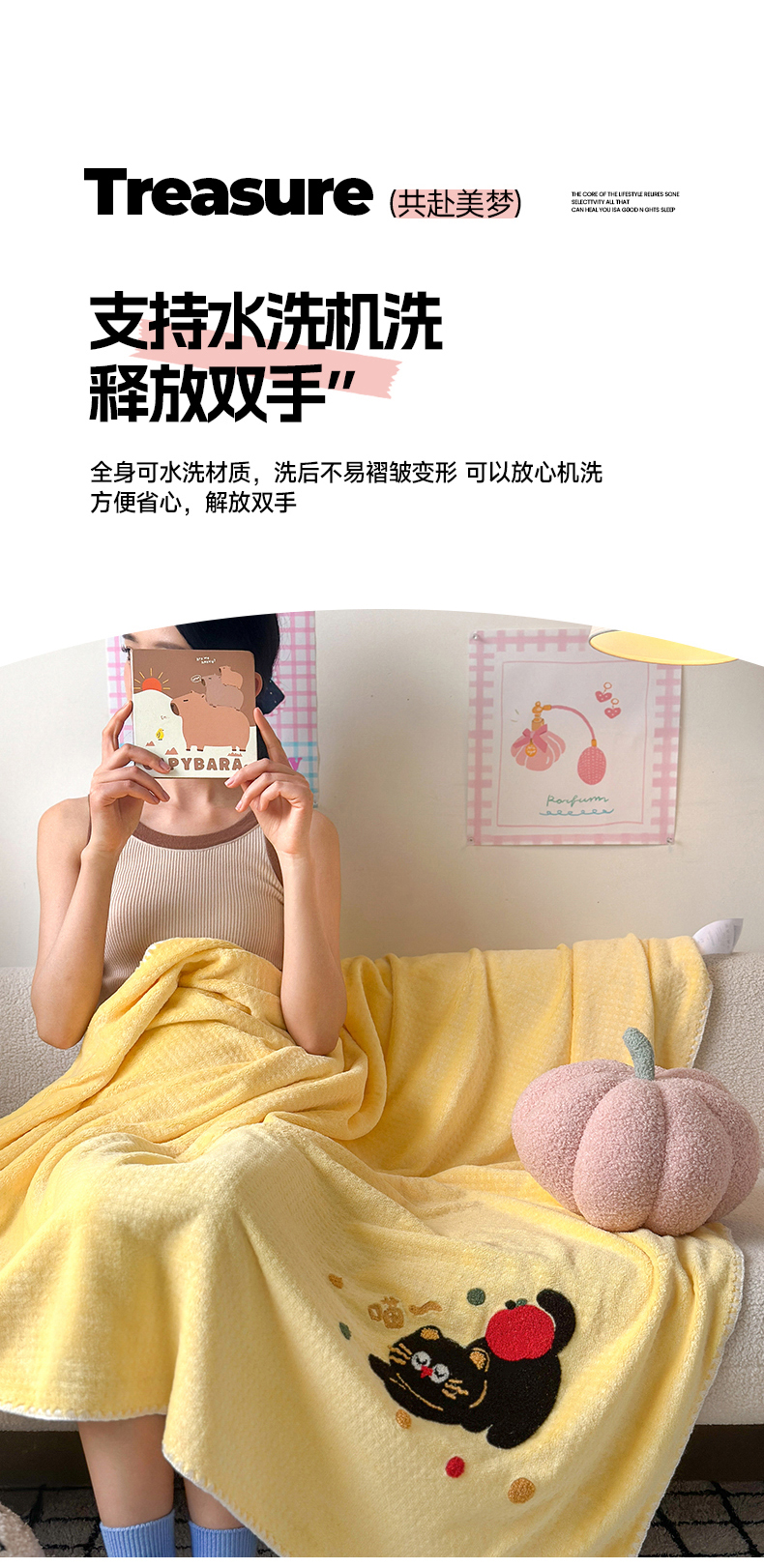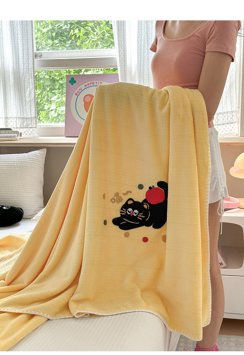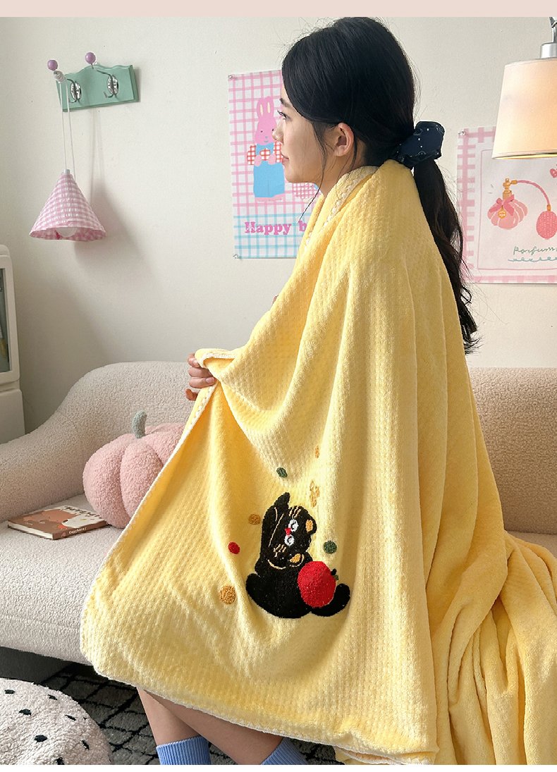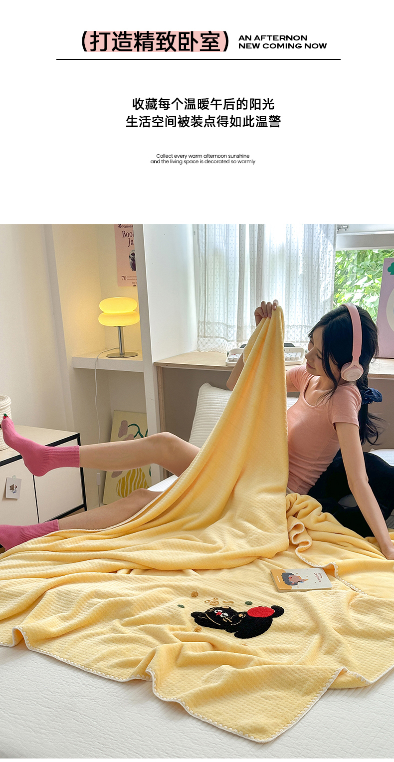 商品名称:艾佳2025新款卡通绣花款小华夫格毛毯毯子 华夫毯-苹果猫咪黄