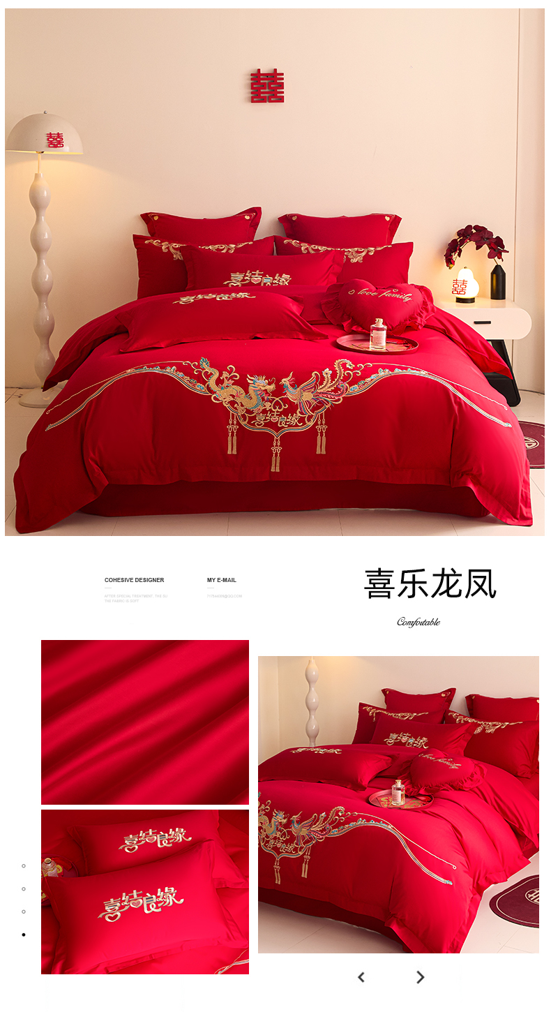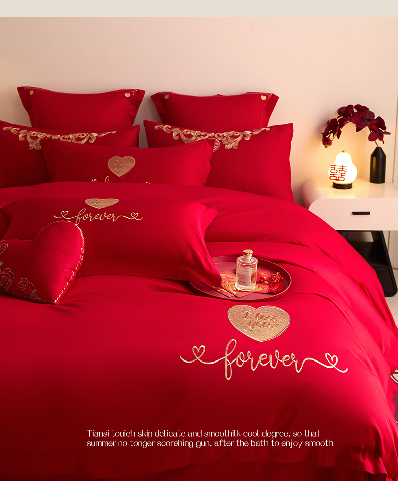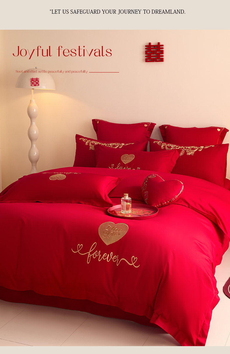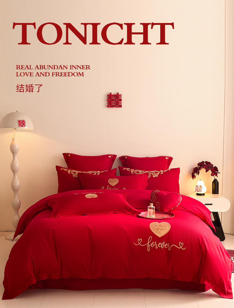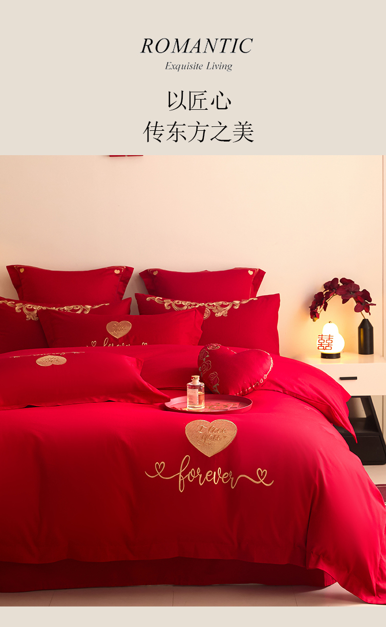 当前位置: 91家纺网 > 商品网购 > 床品套件 > 四件套 > 婚庆四件套 > 东方合美(原:皇家传奇) 2025新款长绒棉纯棉婚庆刺绣小红书系列四件套 结婚了