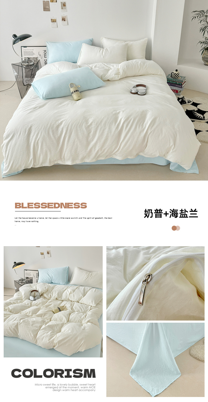 当前位置: 91家纺网 > 商品网购 > 床品套件 > 四件套 > 水洗棉四件套 > 芷凡家纺 2025新款A类加厚水洗棉云朵棉四件套 奶普+海盐兰