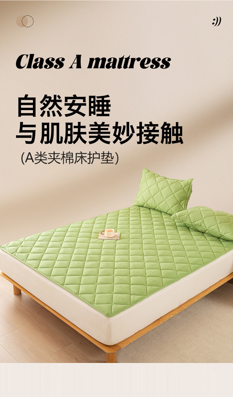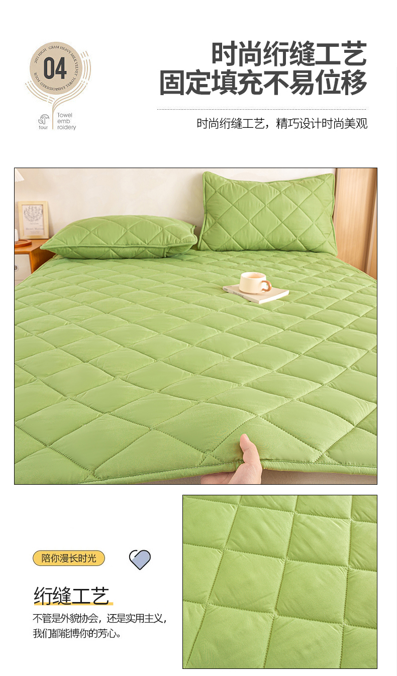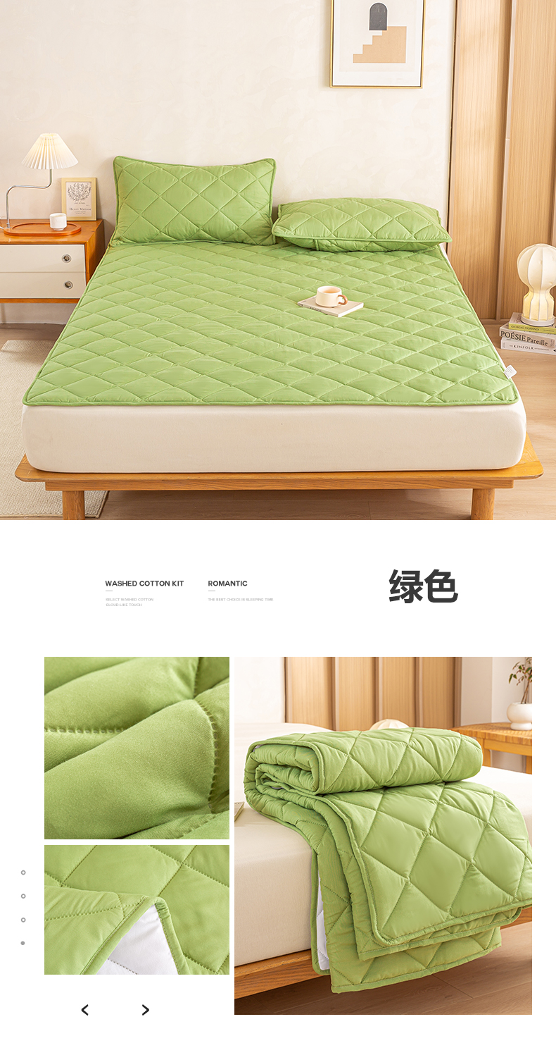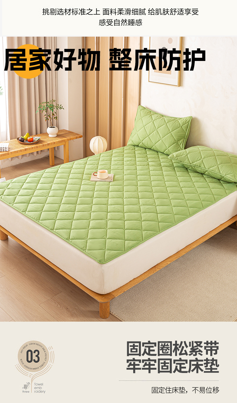 • 91家纺网 家纺一手货源 找家纺 憨豆家纺 2025新款水洗棉磨毛夹棉床笠四季床垫褥子床护垫薄款学生宿舍榻榻米垫被跨境加棉保护垫 床护垫-绿色