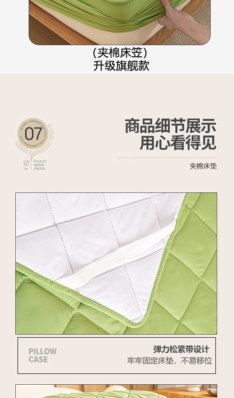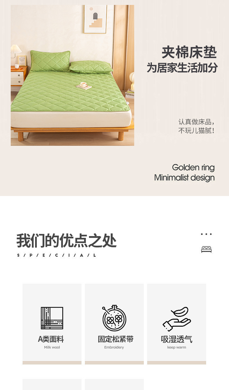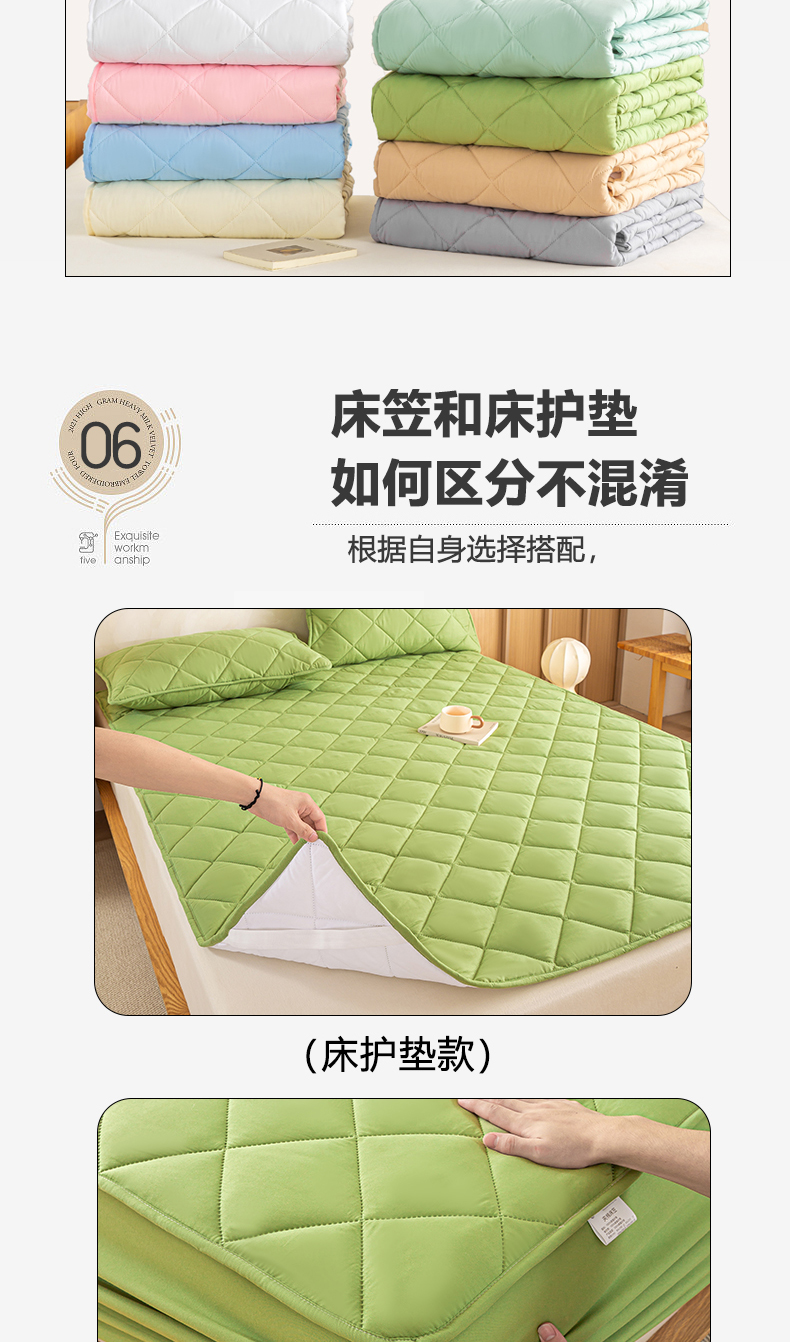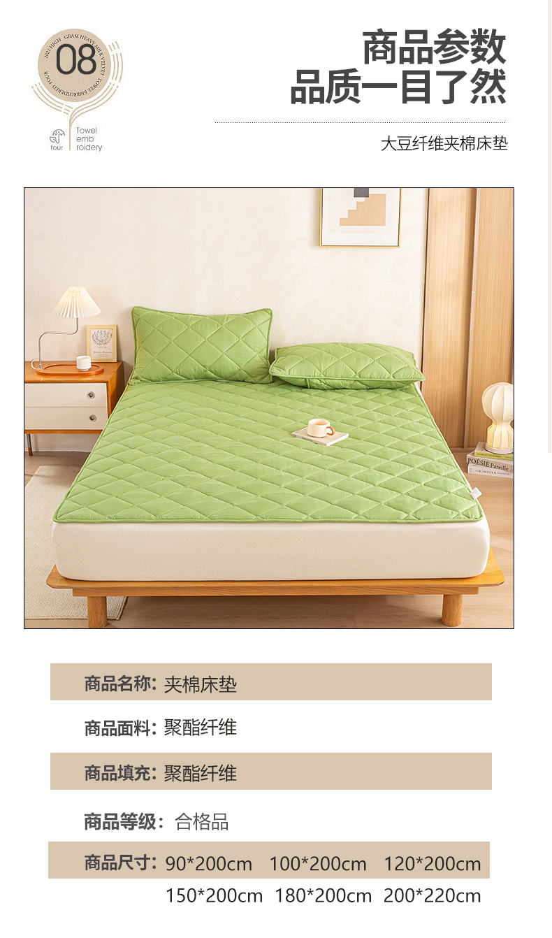 • 91家纺网 家纺一手货源 找家纺 憨豆家纺 2025新款水洗棉磨毛夹棉床笠四季床垫褥子床护垫薄款学生宿舍榻榻米垫被跨境加棉保护垫 床护垫-绿色