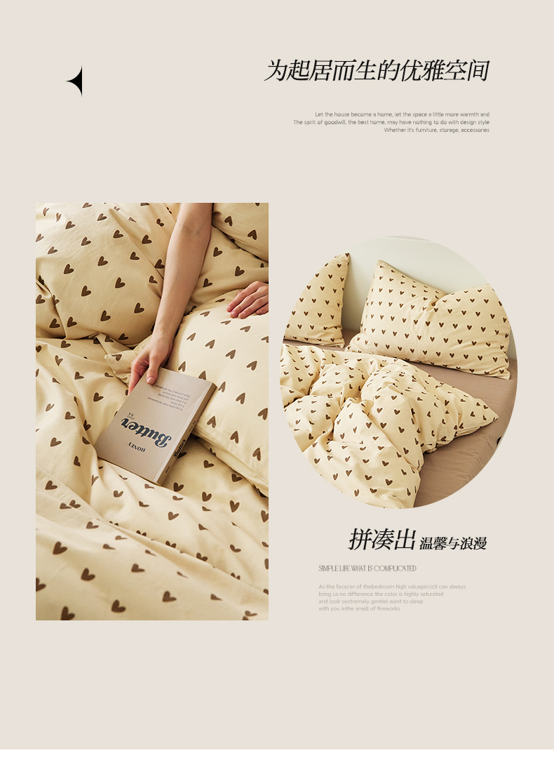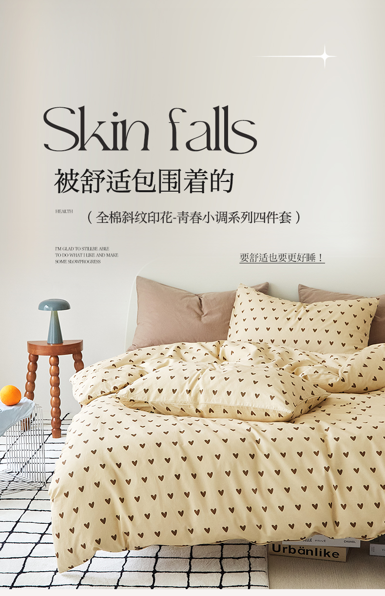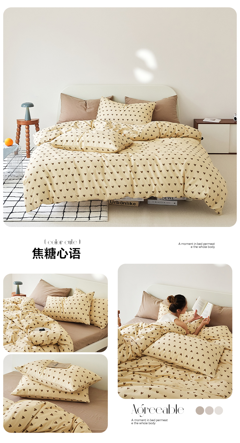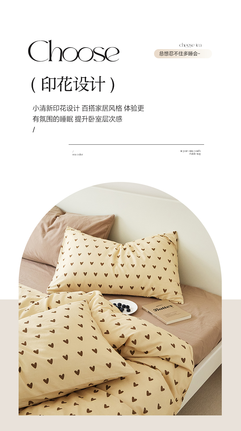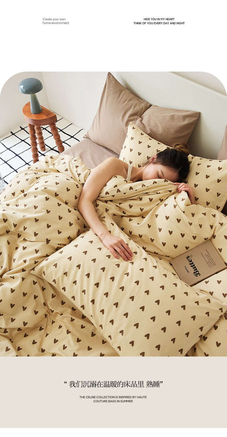当前位置: 91家纺网 > 商品网购 > 床品套件 > 四件套 > 全棉普通四件套 > EH家居 2025新款全棉斜纹印花-青春小调系列四件套 焦糖心语