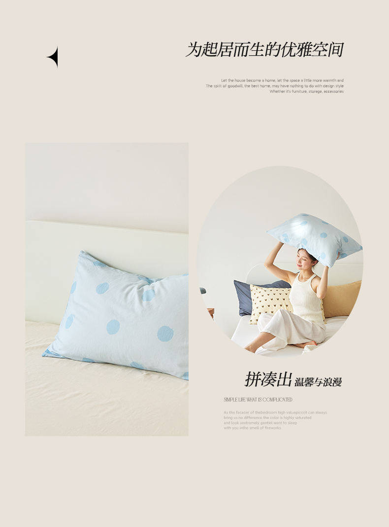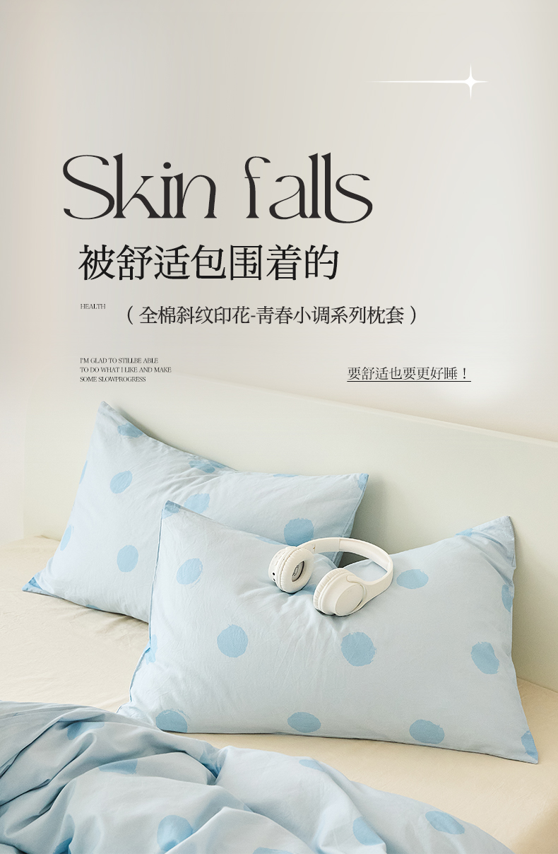 EH家居 2025新款全棉斜纹印花-青春小调系列单枕套 晴空物语