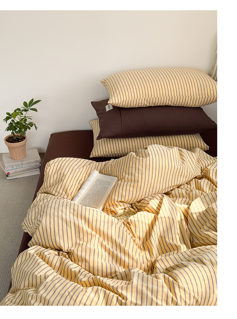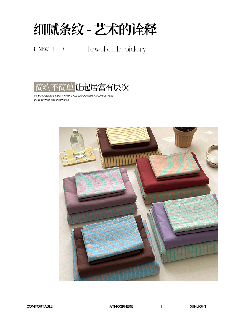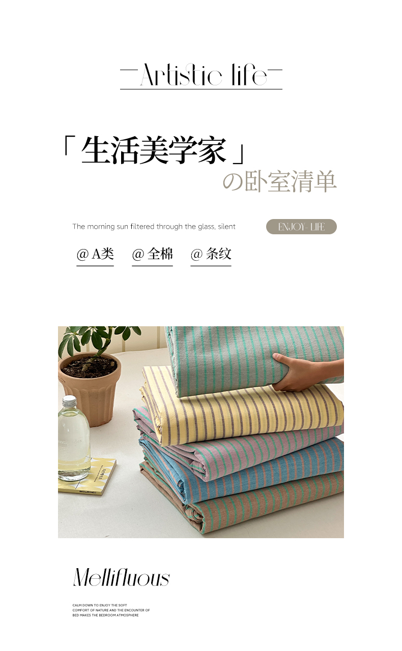 (总)2023年新款条纹日式良品纯棉全棉色织水洗棉四件套,粉密条,灰密条,绿密条,米密条