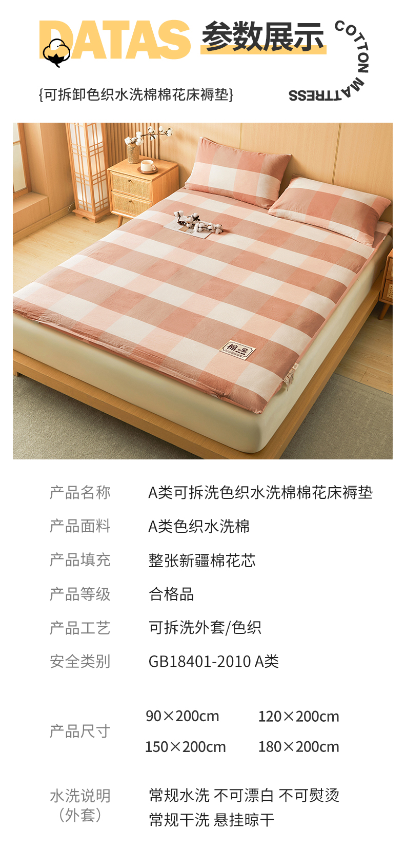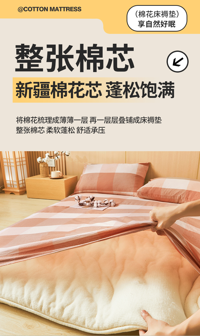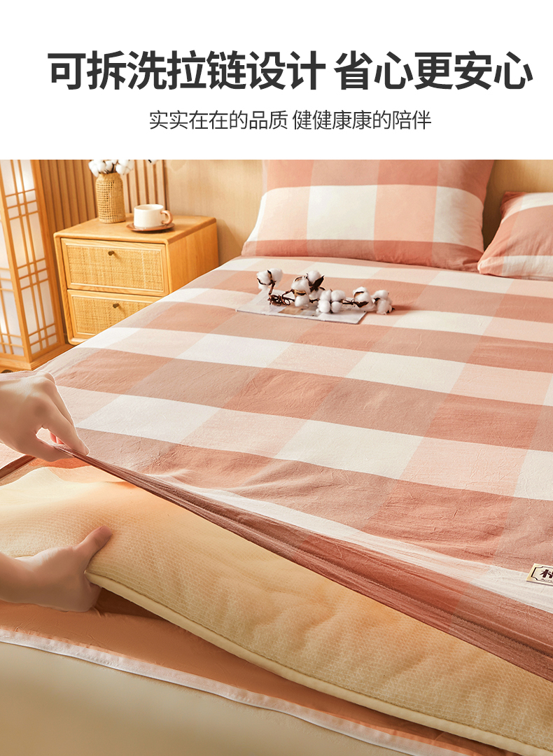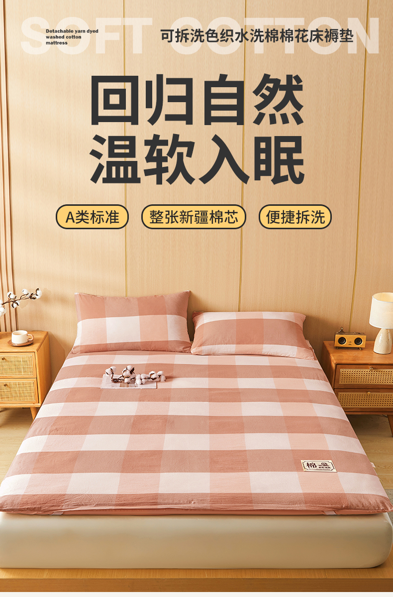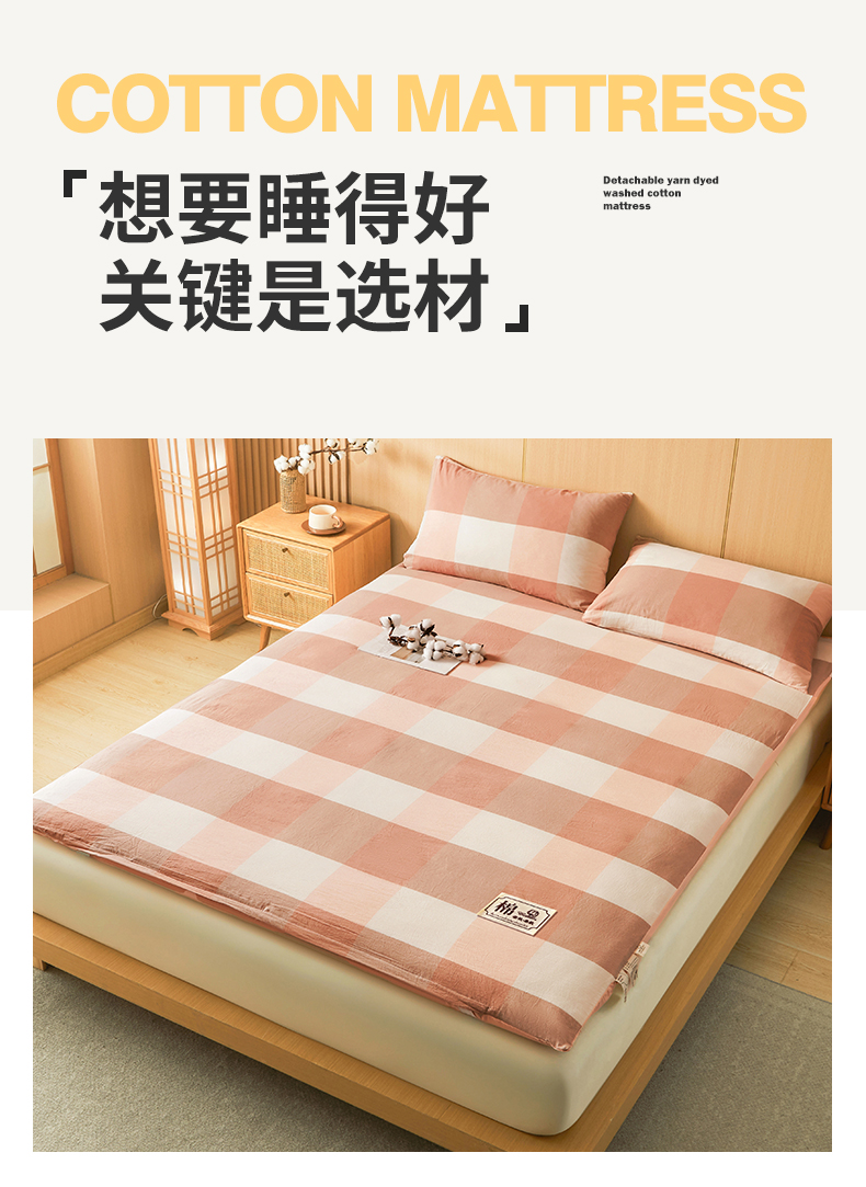 • 91家纺网 家纺一手货源 找家纺 晓时候 20252新款可拆洗新疆棉花床垫被褥子学生宿舍亲肤水洗棉棉花床垫-家用款 蜜粉大格